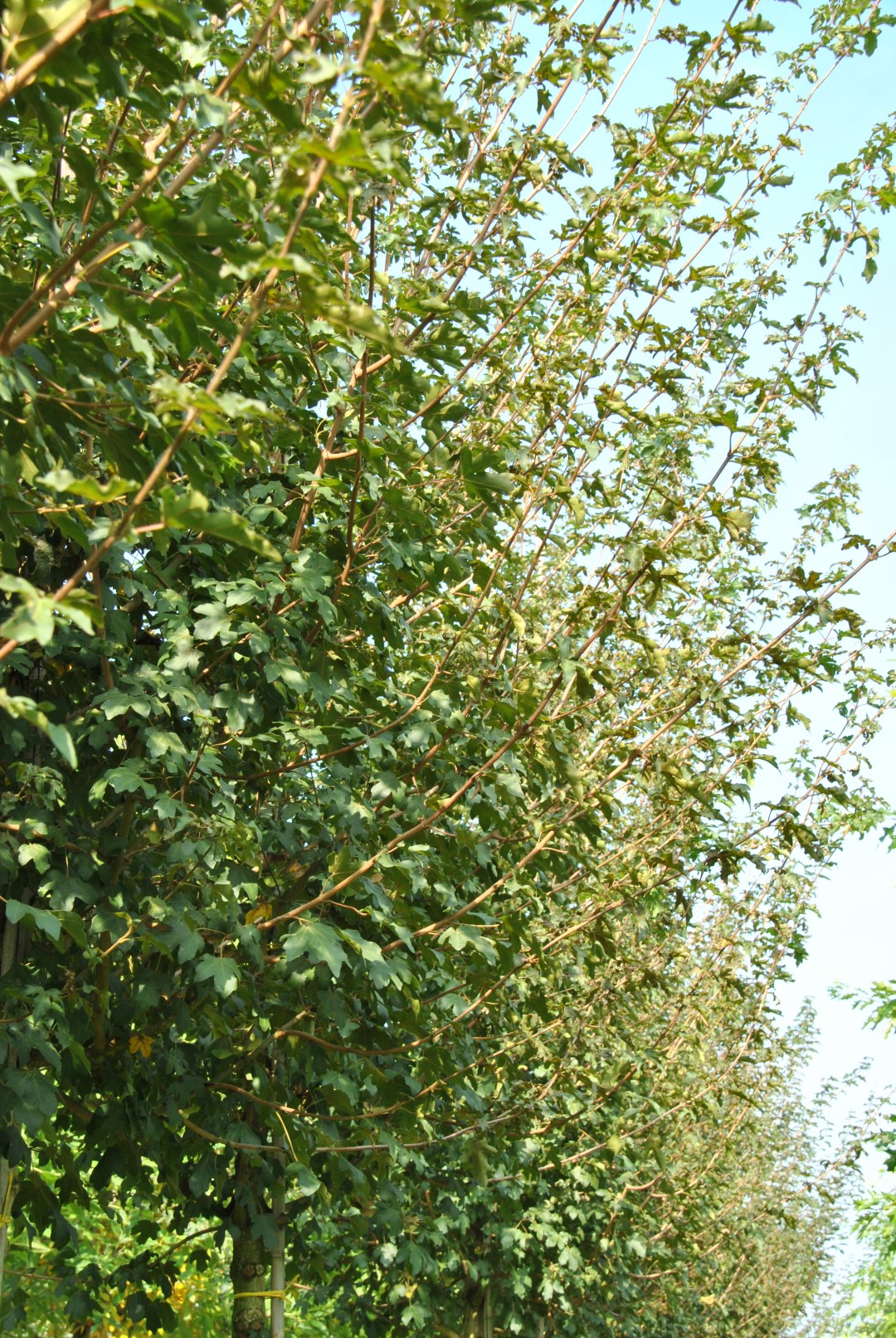 De bladeren van de Acer campestre 'Eco Sentry' kleuren in de herfst geel.
