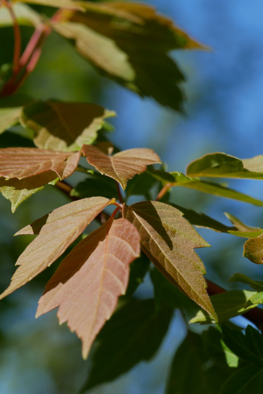 Met een ovale kroon is 'Sensation' duidelijk smaller dan de soort A. negundo en andere cultivars van deze soort. Vormt een compacte kroon met stevige gesteltakken en wordt uiteindelijk zo'n 10 m hoog. Het voorjaarsblad is roodachtig bronskleurig. 's Zomers is het donkergroen, maar steeds met een koperkleurige zweem. De herfstkleuren zijn diep purperrood tot dieprood en houden vaak wekenlang aan. 'Sensation' is een mannelijke cultivar en zal dus geen zaden en overlast gevende zaailingen produceren. Het is een sterke cultivar die veel droogte en warmte verdraagt. Werd eind '80-er jaren van de vorige eeuw door J. Frank Schmidt & Son Co., Boring, Oregon, USA geselecteerd en in 1993 geïntroduceerd. Winterhardheidszone: 4