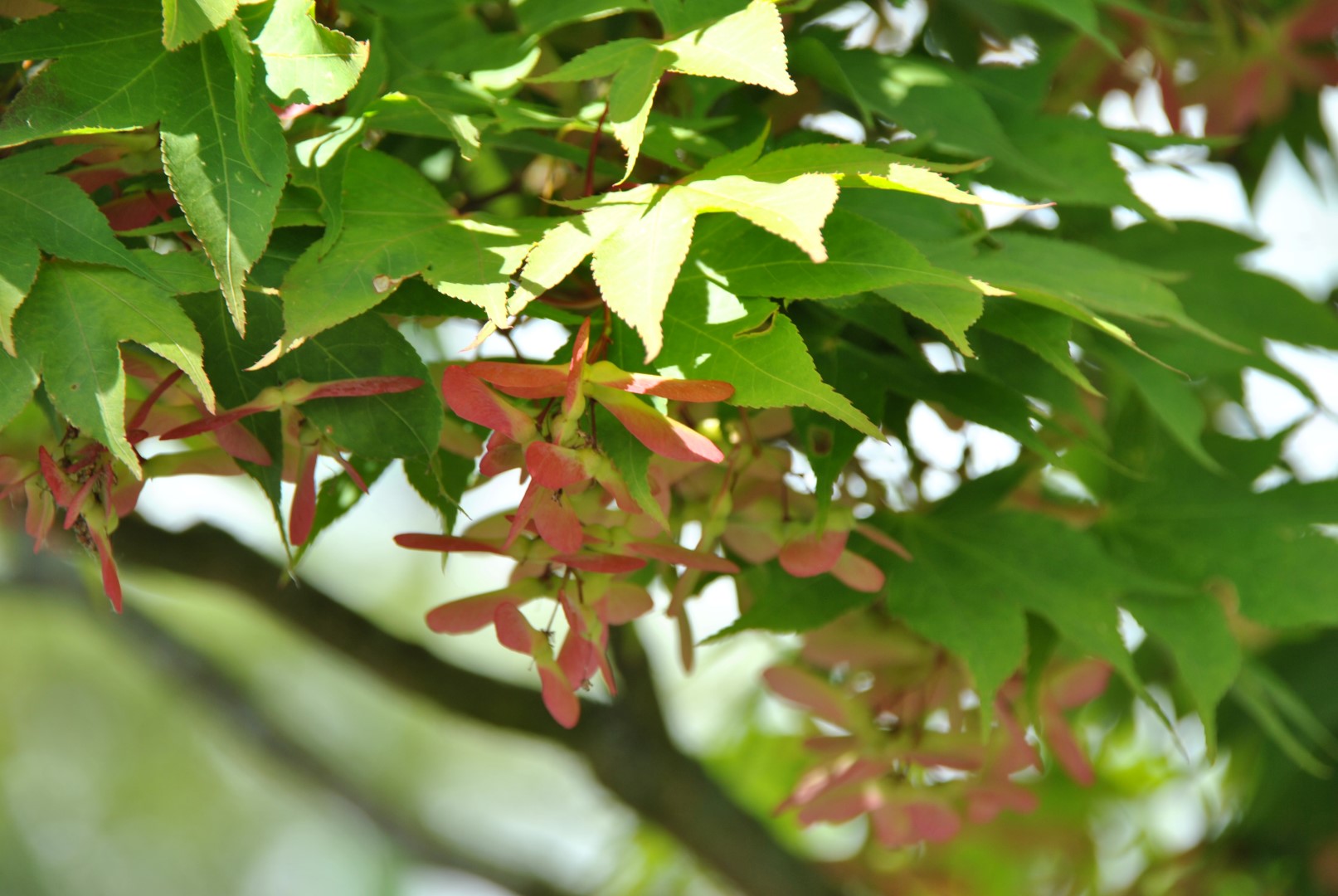 Acer palmatum 'Ôsakazuki' bloeit in april.