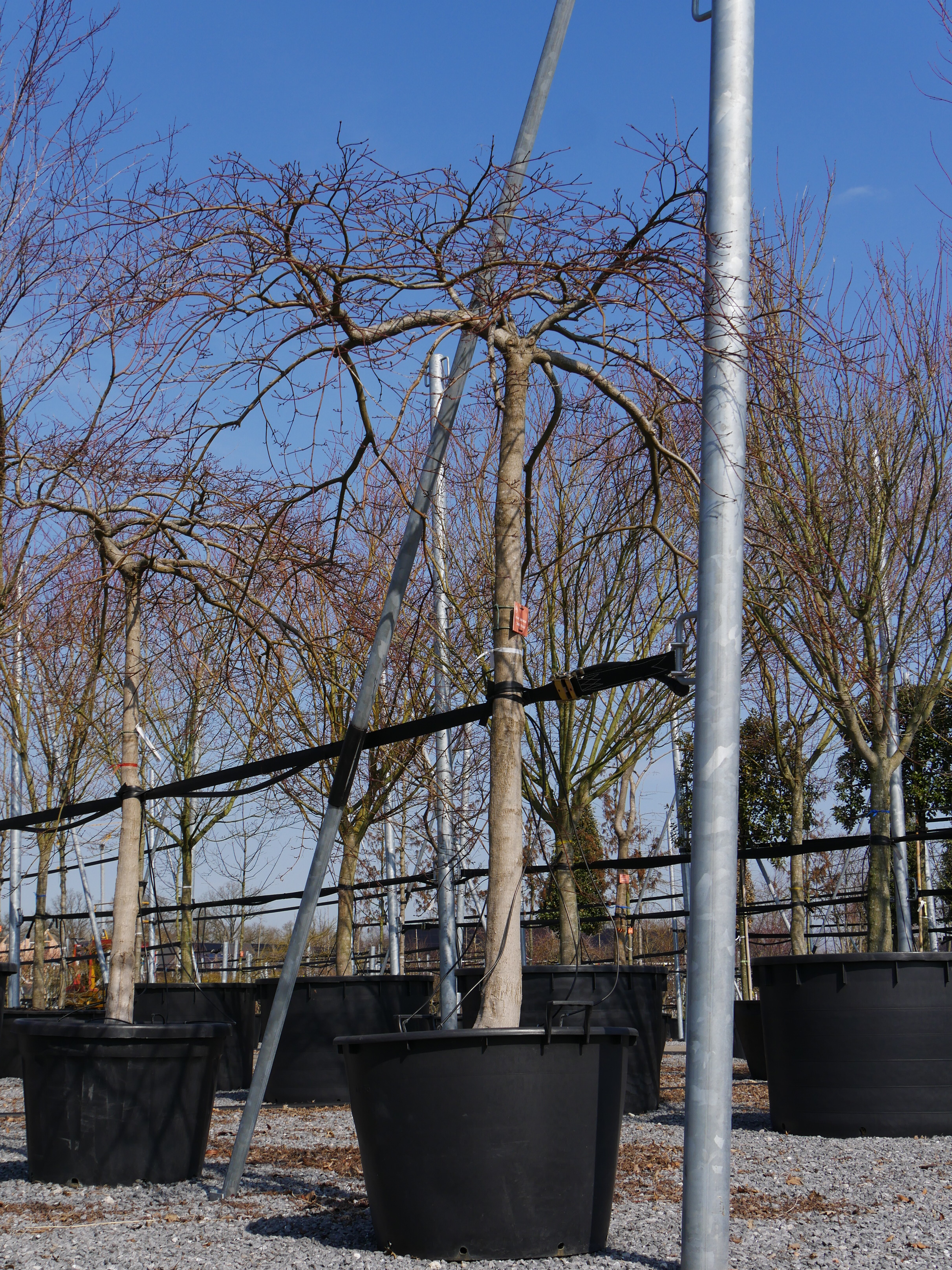 Hoeveelheden voor bewatering zijn eigenlijk niet te geven omdat die afhankelijk is van de weersomstandigheden, de soort, de maat van de boom en de groeiplaats-omstandigheden. Dat is soms lastig inschatten. De vochtigheid van de kluit is te controleren door direct naast de kluit een smal gat te graven of een guts in de kluit te steken. Ook de frequentie van water geven is moeilijk te zeggen maar het is beter één keer een flinke hoeveelheid water te geven dan iedere dag een klein beetje. Het is belangrijk dat het water goed in de kluit trekt en niet alleen de bovenste laag bevochtigd. Let op; vochtig maar niet kletsnat! Een boom kan ook dood gaan aan een teveel aan water. Als de standplaats voortdurend kletsnat is kunnen de wortels gaan rotten. Meer informatie is te vinden op de pagina: "Bomen water geven"