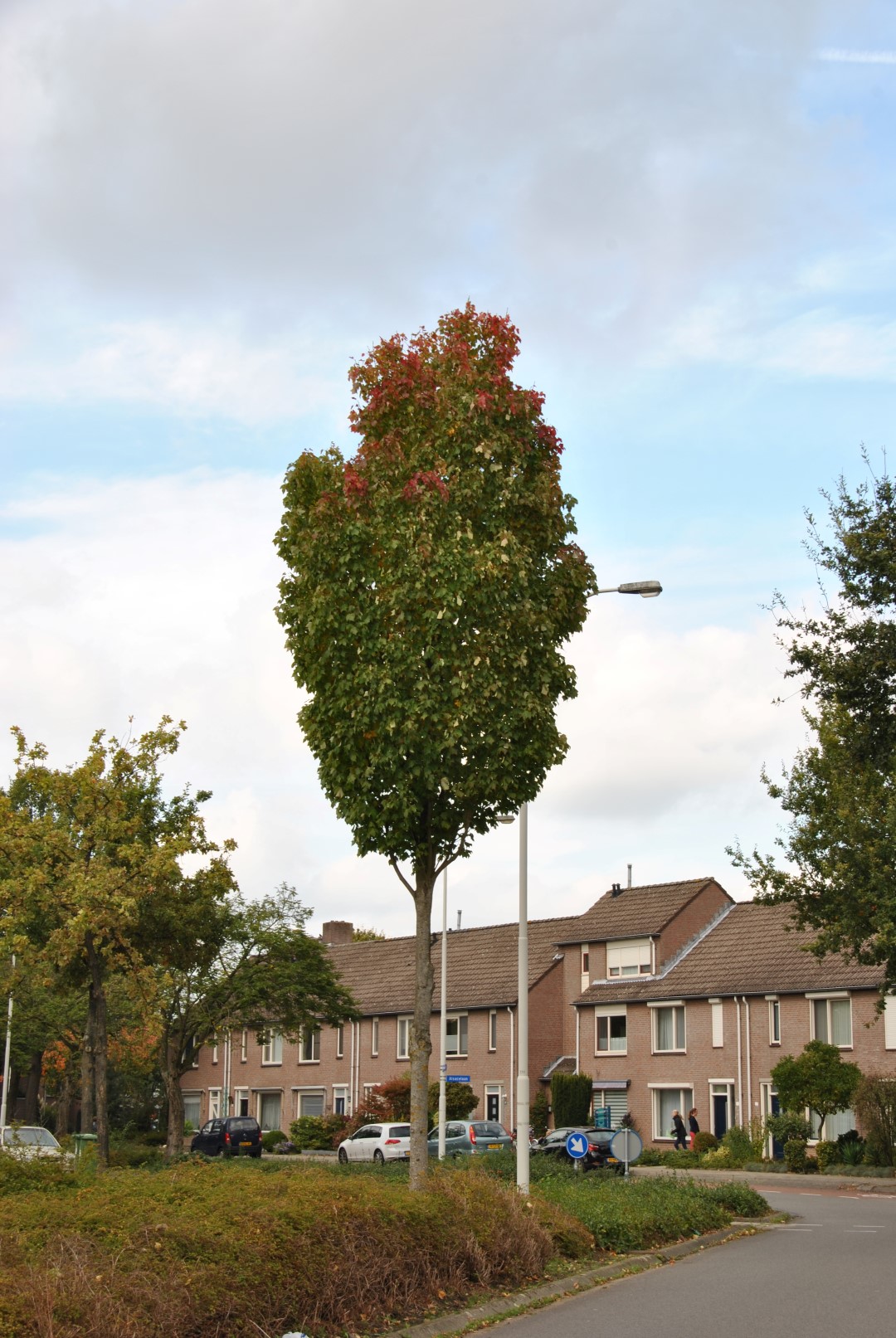 De bladeren van de Acer platanoides 'Columnare' kleuren in de herfst geel.