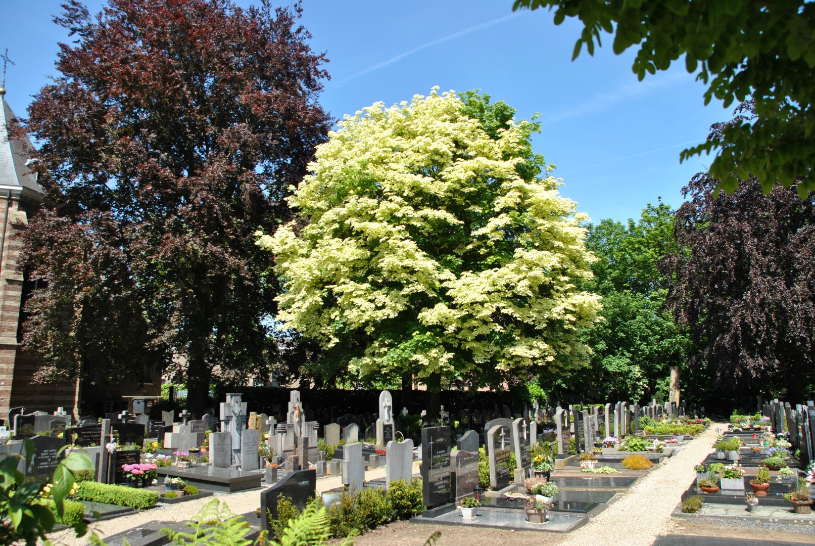 Hoogstam boom Meerstammige boom Kleigrond Lemige grond Veengrond Zandgrond verdraagt halfverharding Bestand tegen vorst (WH 1 t/m 6) Bestand tegen korte overstromingen Bestand tegen wind Breed Piramidiaal 2de grootte, boom tussen 6 en 12m Dichte kroon Bont creme/groen Geelgroen Langzame groeisnelheid Drachtboom voor bijen Waardboom voor vlinders Giftige onderdelen