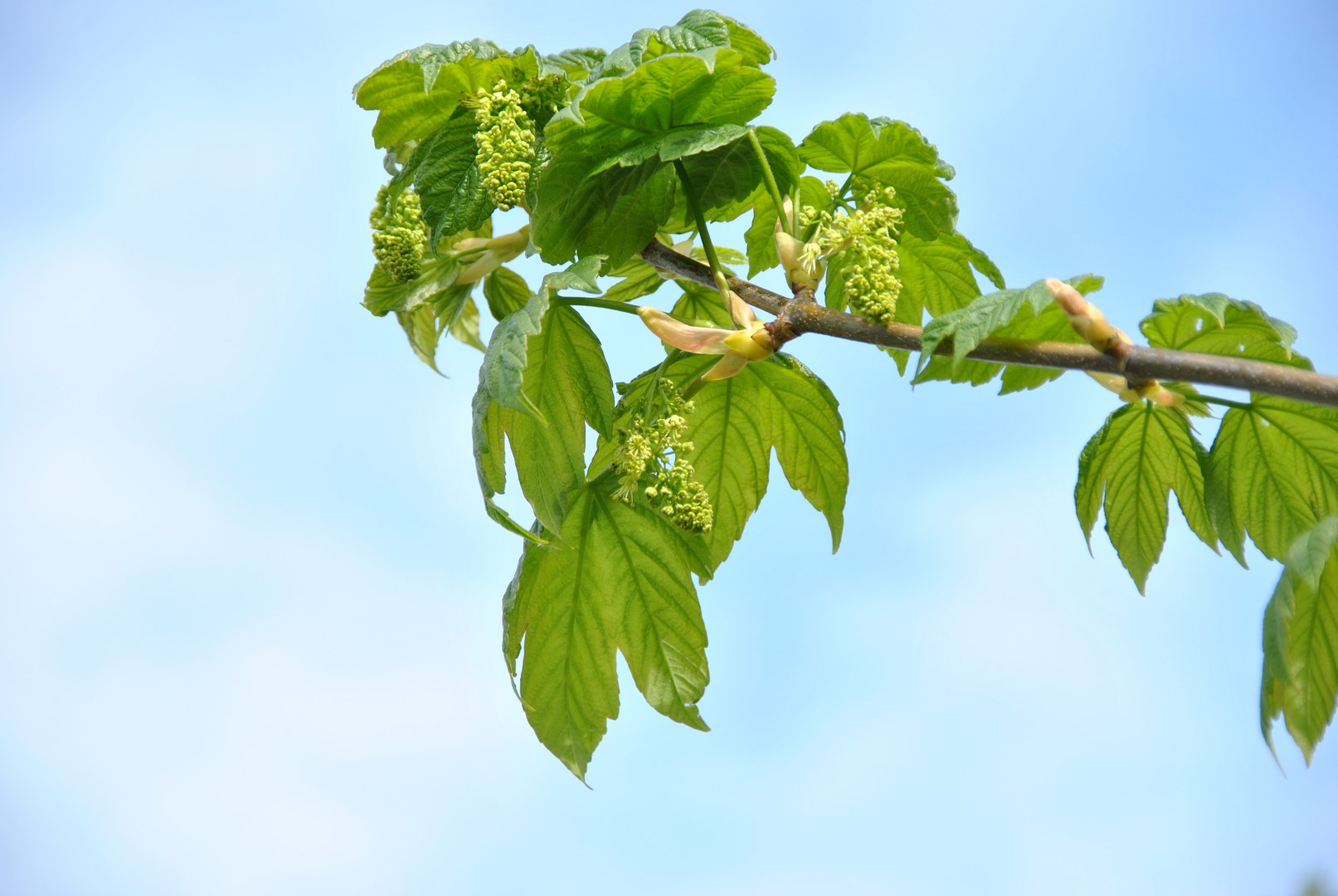 Acer pseudoplatanus 'Bruchem' bloeit in april.
