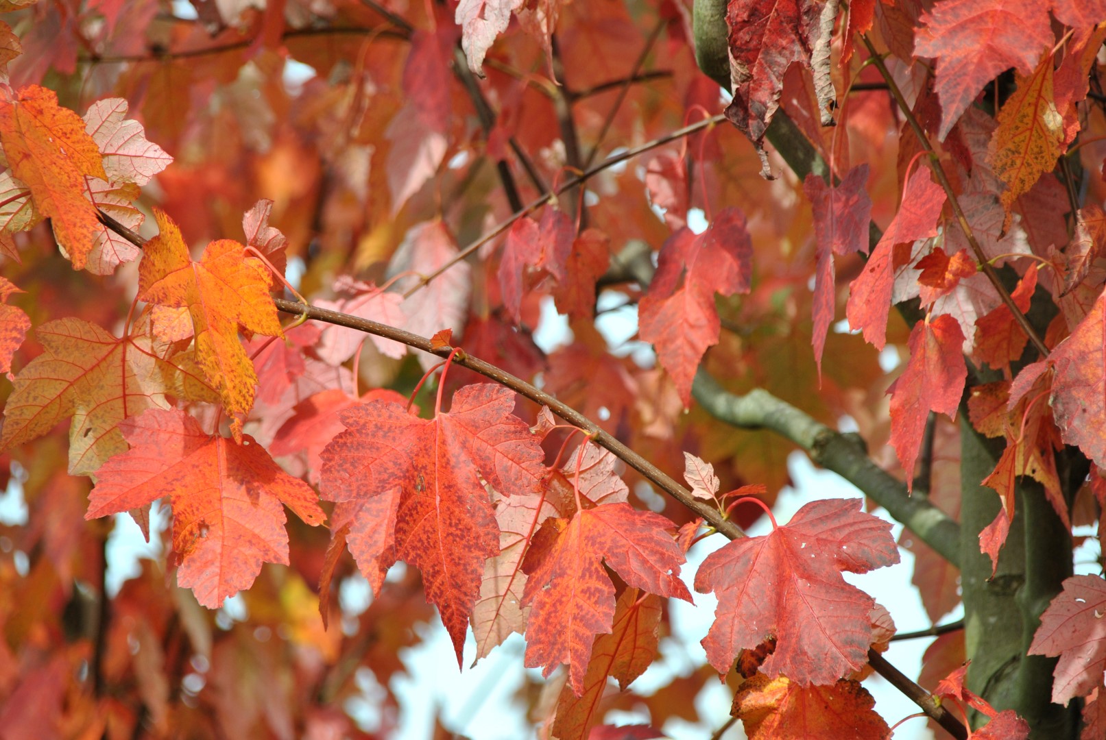 De bladeren van de Acer rubrum 'Embers' kleuren in de herfst rood.