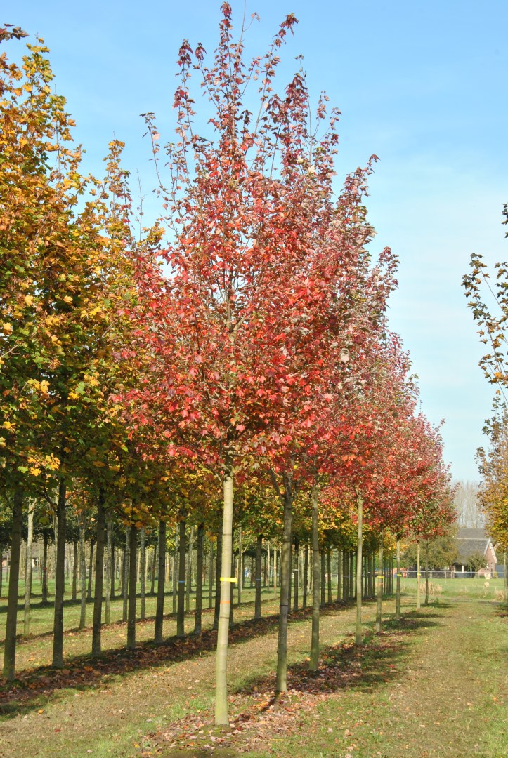 Wederom een rode esdoorn die geselecteerd werd vanwege de schitterende herfstkleuren. 'Fairview Flame' kleurt in de herfst prachtig dieprood. Het is een vrij krachtig groeiende boom met een regelmatige piramidale kroon die op latere leeftijd wat uitzakt en ronder wordt. Het zomerblad is glimmend donkergroen en ietwat rood getint. Zeer geschikt als straat- en parkboom. Ook prima te gebruiken langs oprijlanen . Op kalkhoudende grond zal de groei stagneren. Op deze grond, evenals op heel droge grond, zal minder herfstverkleuring plaatsvinden. Verdraagt (zee)wind slecht.