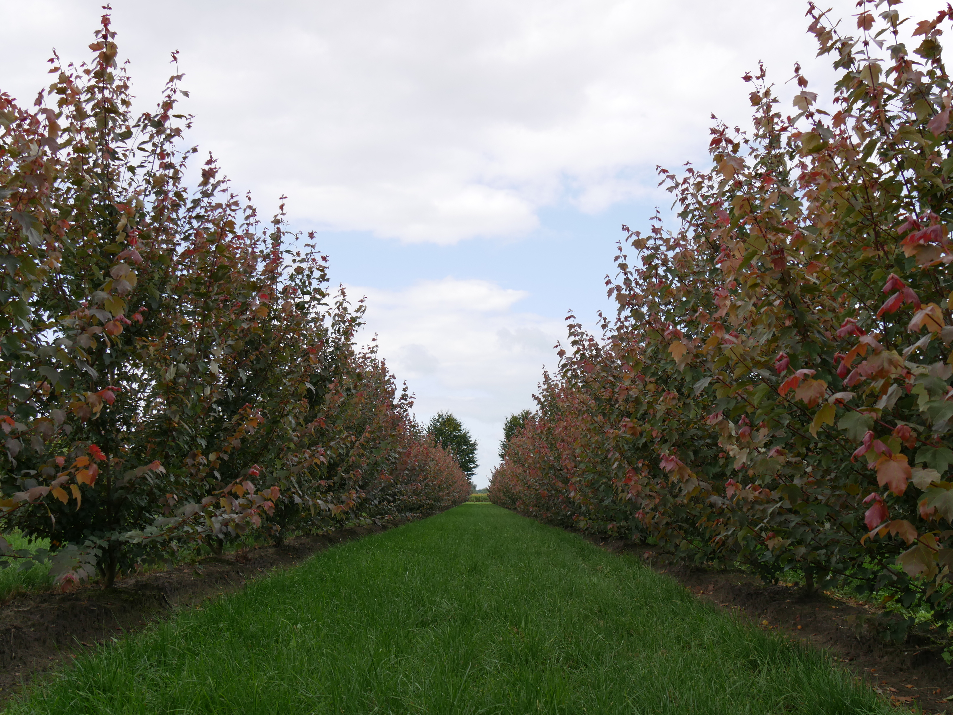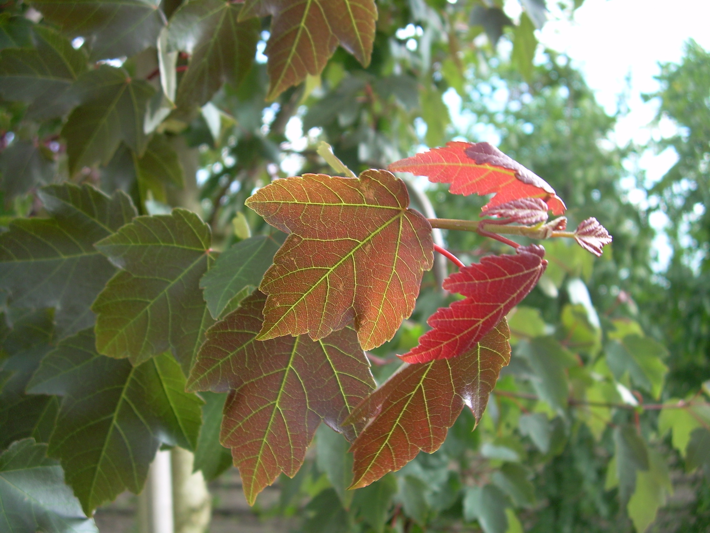 De bladeren van de Acer rubrum SUMMER RED ('HOSR') kleuren in de herfst geel.