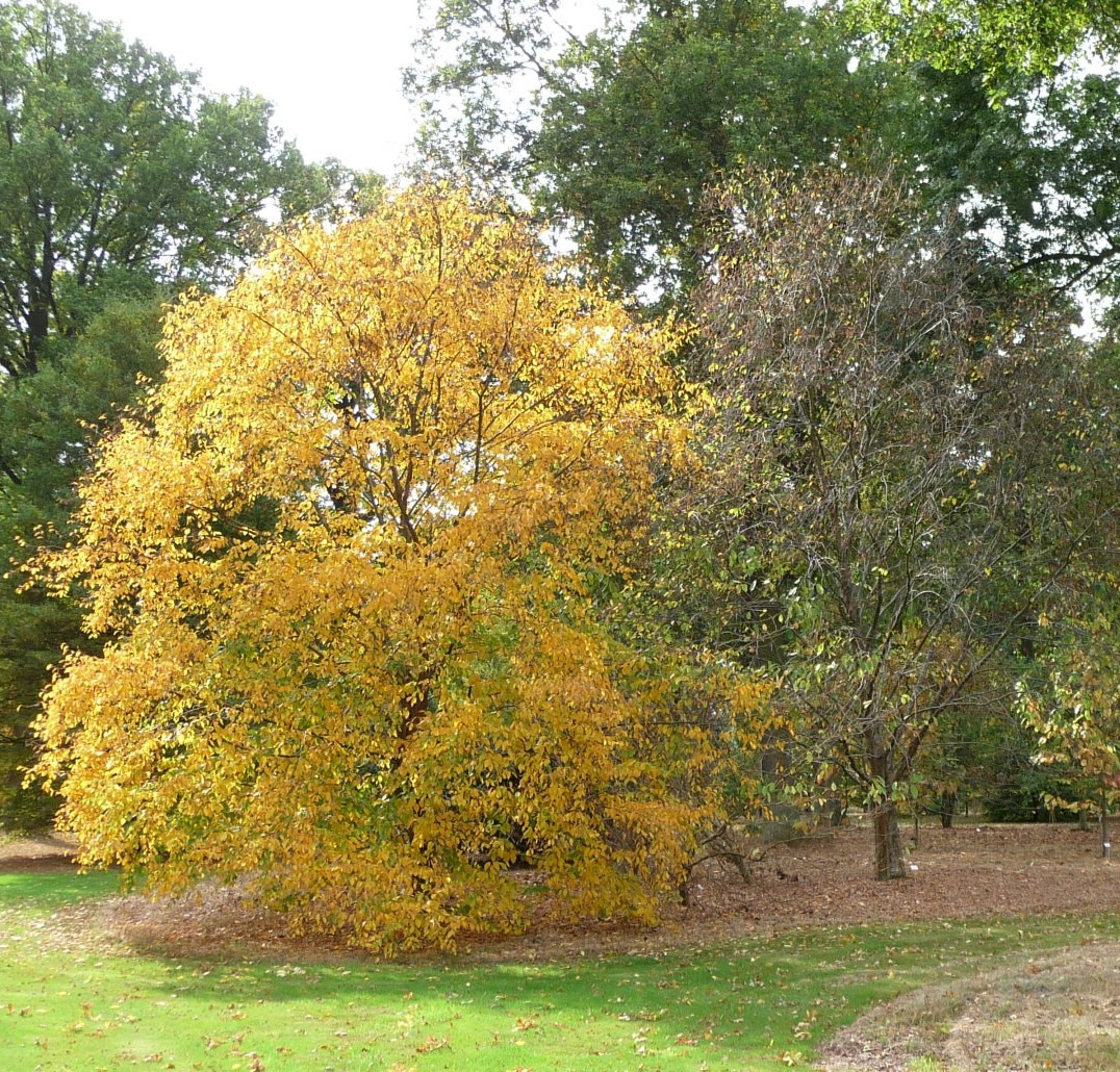 De bladeren van de Betula alleghaniensis kleuren in de herfst geel.