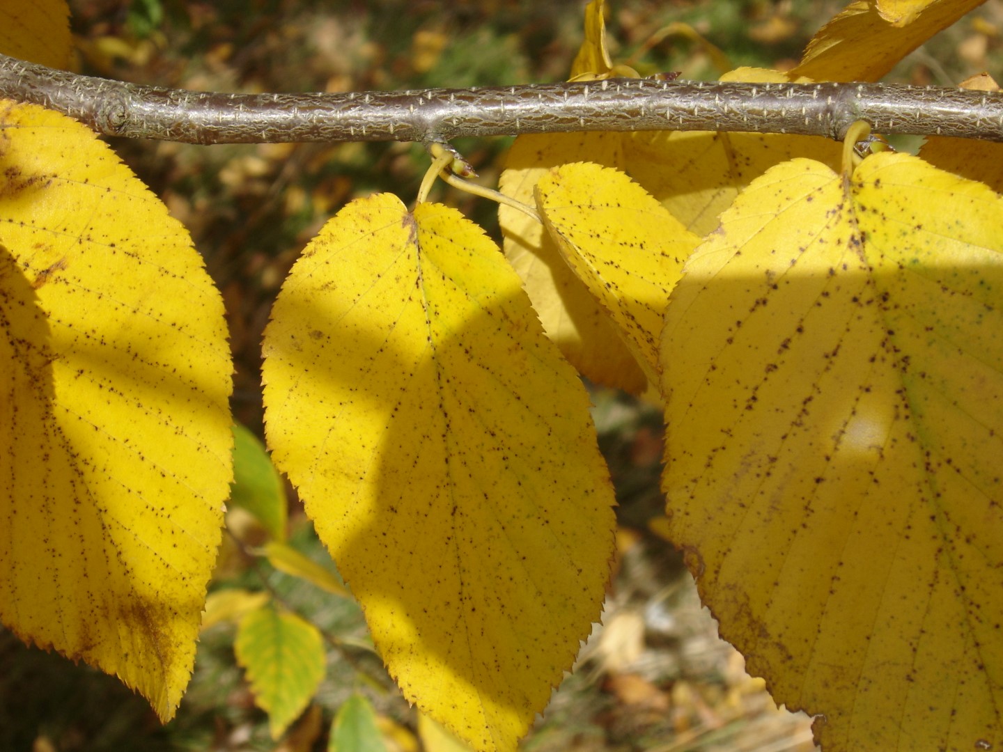 De bladeren van de Betula lenta kleuren in de herfst geel.