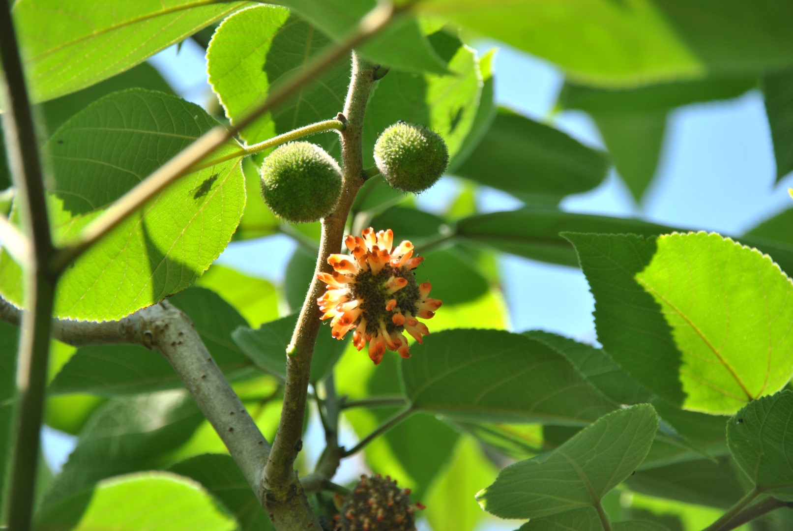 De bladeren van de Broussonetia papyrifera kleuren in de herfst geel.