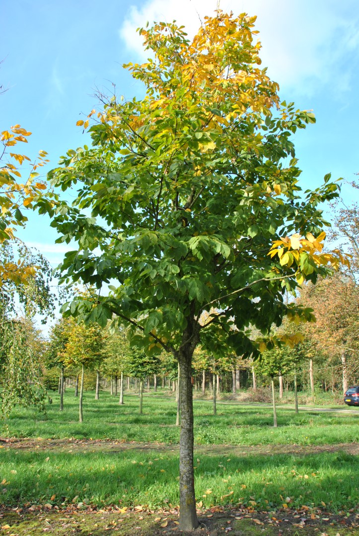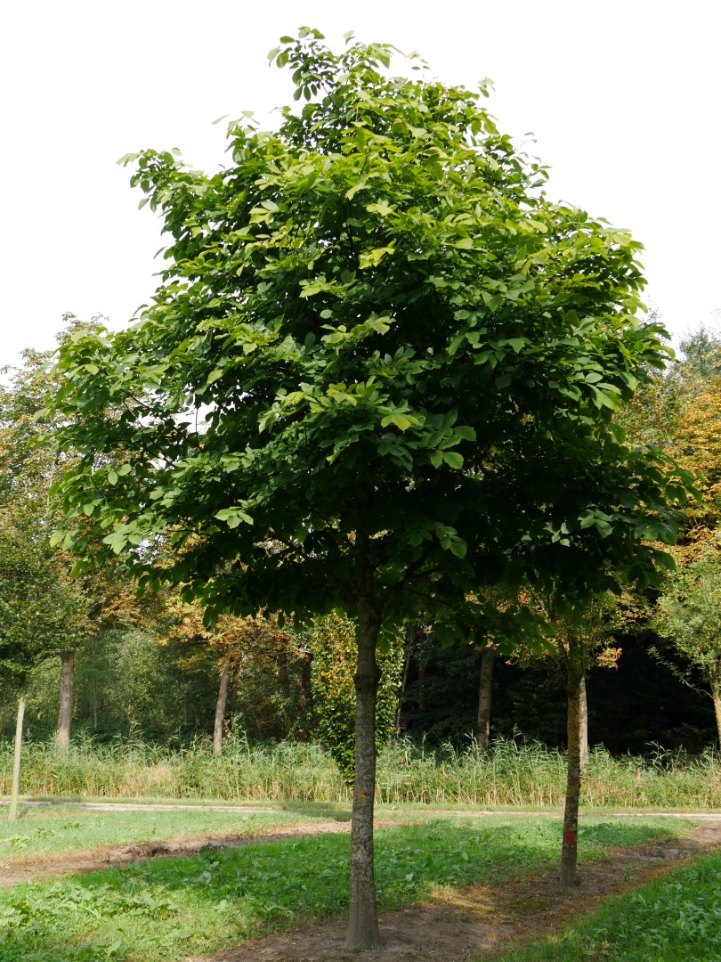Hoogstam boom Meerstammige boom Kleigrond Lemige grond Zandgrond verdraagt geen verharding Bestand tegen vorst (WH 1 t/m 6) Bestand tegen wind Afgeplat bolvormig Rond/bolvormig 2de grootte, boom tussen 6 en 12m Halfopen kroon Groen Mei Late uitloop Gemiddelde groeisnelheid Opvallende bloei Geveerd blad Alle herfstkleuren Drachtboom voor bijen Niet giftig (gewoonlijk) Grillig groeiend Sierlijke vruchten Geurende bloemen Speelboom