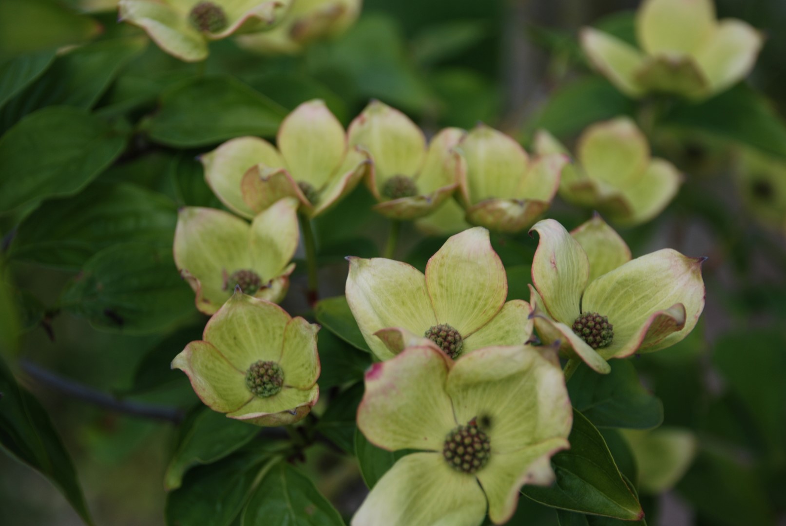 Cornus RUTH ELLEN 'Rutlan' bloeit in mei.