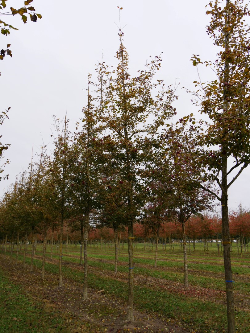 Hoogstam boom Meerstammige boom Lemige grond Zandgrond verdraagt geen verharding Bestand tegen vorst (WH 1 t/m 6) Schaduwdragend Bestand tegen wind Afgeplat bolvormig Rond/bolvormig 2de grootte, boom tussen 6 en 12m Halfopen kroon Groen Roze Mei Gemiddelde groeisnelheid Opvallende bloei Alle soorten Drachtboom voor bijen Waardboom voor vlinders Voedselboom voor vogels Niet giftig (gewoonlijk) Grillig groeiend Sierlijke vruchten Ja