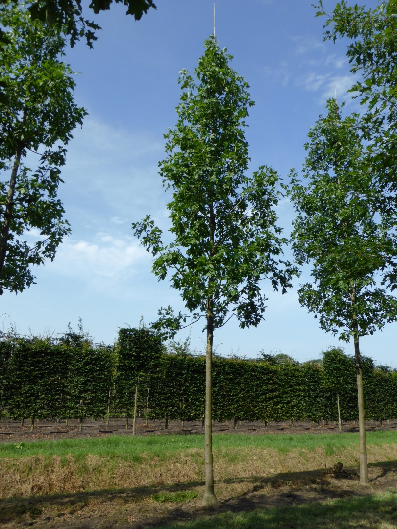 Hoogstam boom Kalkrijke grond Kleigrond Lemige grond Zandgrond verdraagt halfverharding Bestand tegen strooizout Bestand tegen vorst (WH 1 t/m 6) Kan op droge grond Kan op natte grond Bestand tegen wind Ovaal 1ste grootte, boom hoger dan 12m Halfopen kroon Groen Geelgroen Late uitloop Snelle groeisnelheid Geveerd blad Alle herfstkleuren Niet giftig (gewoonlijk) Vruchtloze cultivar