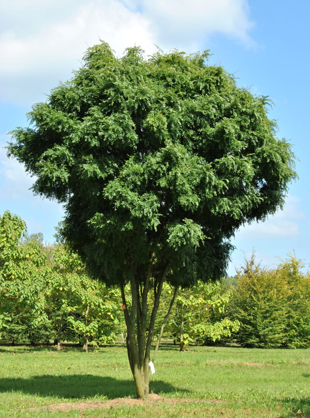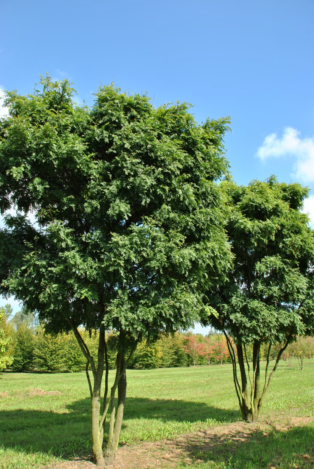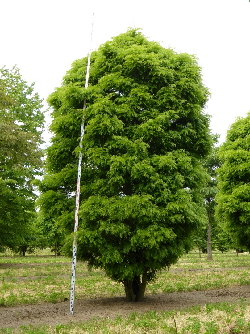 Gleditsia triacanthos 'Elegantissima' is een grote, meerstammige struik of kleine boom op stam. Groeit langzaam en heeft een open eivormige kroon. Hoogte 4 - 6 (8) m. Stam en takken zijn ongedoornd mits hij geënt wordt op G. triacanthos f. inermis. Het samengestelde blad is fijner van structuur en eleganter dan bij de soort. De afzonderlijke blaadjes zijn donkerder groen en kleiner dan bij de soort, circa 2 cm. Na de bloei verschijnen de tot 45 cm lange, sikkelvormige, peulen. Deze kleuren van geelgroen naar bruinrood en blijven tot diep in de winter hangen. Heeft een diepgaand wortelgestel met veel vertakkingen. Kan goed in verharding. Winterhardheidszone: 5a