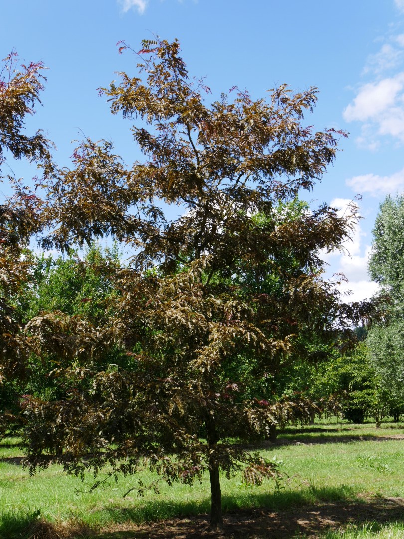 Hoogstam boom Beveerde boom Meerstammige boom Kalkrijke grond Lemige grond Zandgrond verdraagt verharding Lichtminnend Bestand tegen strooizout Bestand tegen vorst (WH 1 t/m 6) Kan op droge grond Bestand tegen wind 2de grootte, boom tussen 6 en 12m Open kroon Brondgroen Roodbruin Geelgroen Late uitloop Gemiddelde groeisnelheid Geveerd blad Drachtboom voor bijen Niet giftig (gewoonlijk) Grillig groeiend Vruchtloze cultivar Toekomstboom