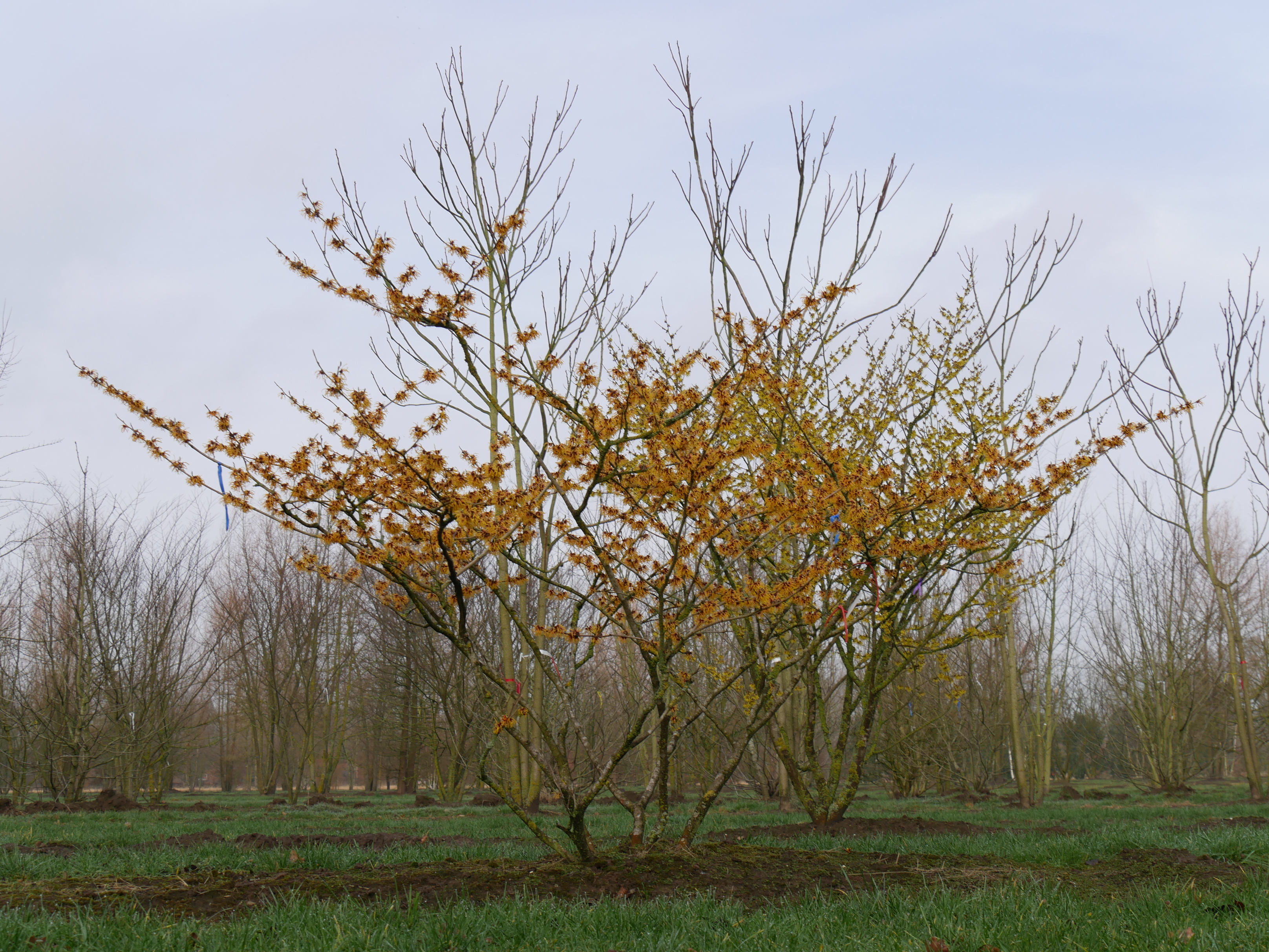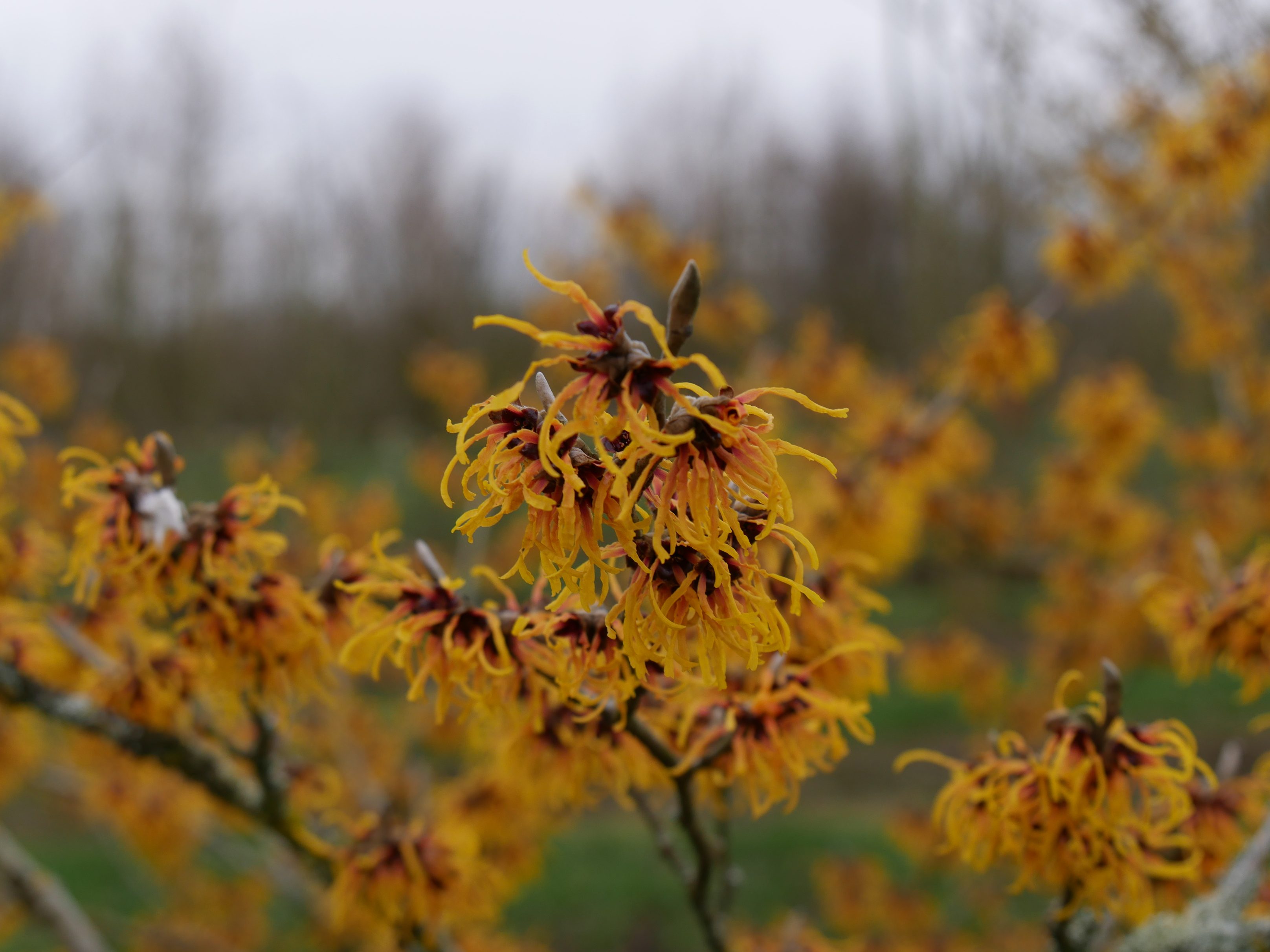 Hamamelis ×intermedia 'Orange Beauty' bloeit in januari.