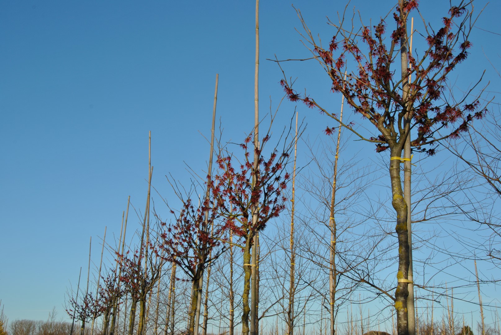 Hamamelis ×intermedia 'Ruby Glow' bloeit in januari.