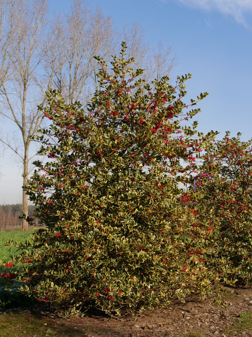 Ilex ×altaclerensis 'Golden King' bloeit in mei.