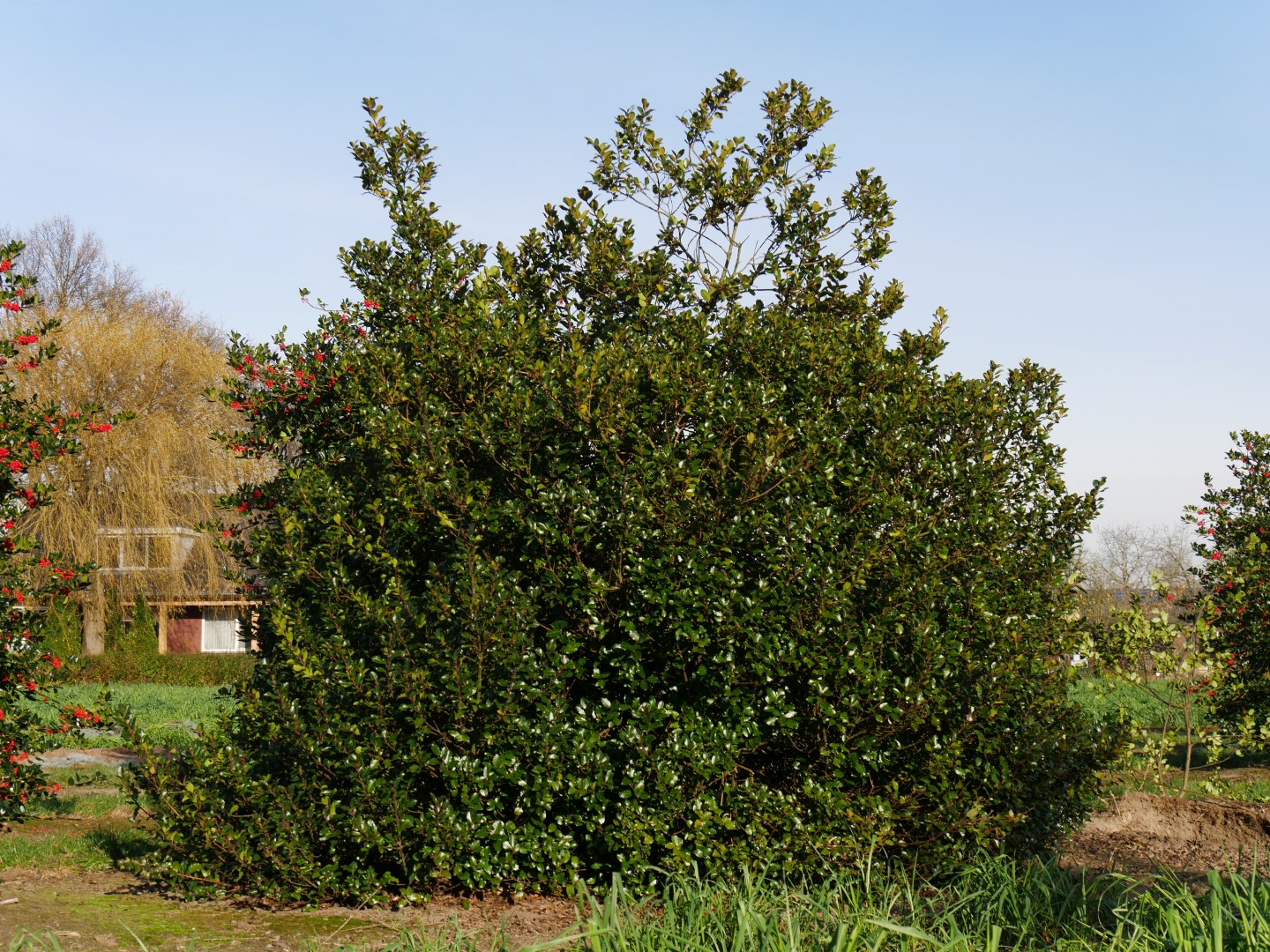 Ilex ×meserveae 'Blue Prince' bloeit in mei.