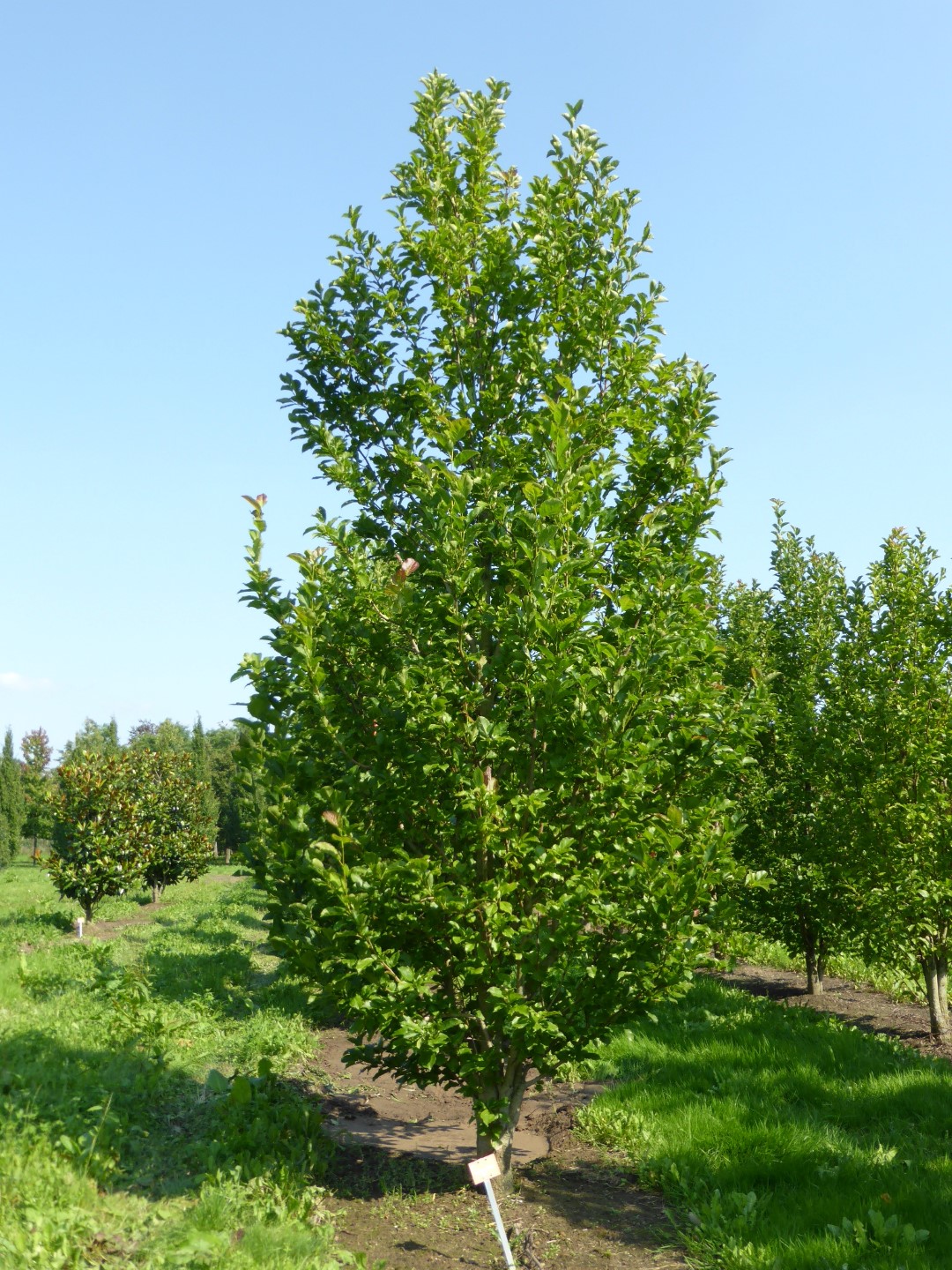 Hoogstam boom Beveerde boom Meerstammige boom Zure grond Kleigrond Lemige grond Veengrond Zandgrond verdraagt verharding Bestand tegen vorst (WH 1 t/m 6) Bestand tegen wind Zuilvormig 2de grootte, boom tussen 6 en 12m Halfopen kroon Groen Wit Maart Gemiddelde groeisnelheid Opvallende bloei Niet giftig (gewoonlijk)