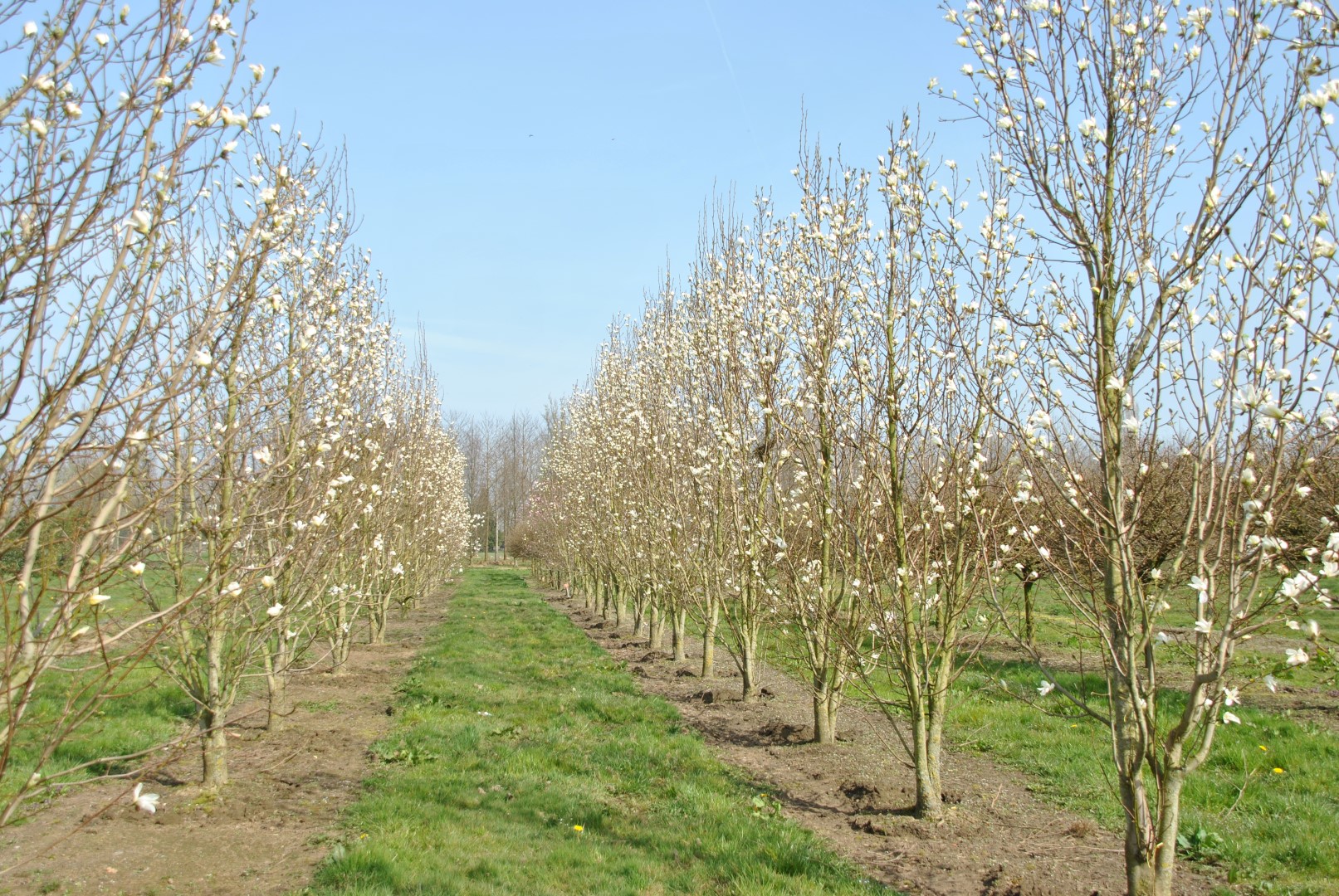 Magnolia kobus ISIS ('Maráczy') bloeit in maart.