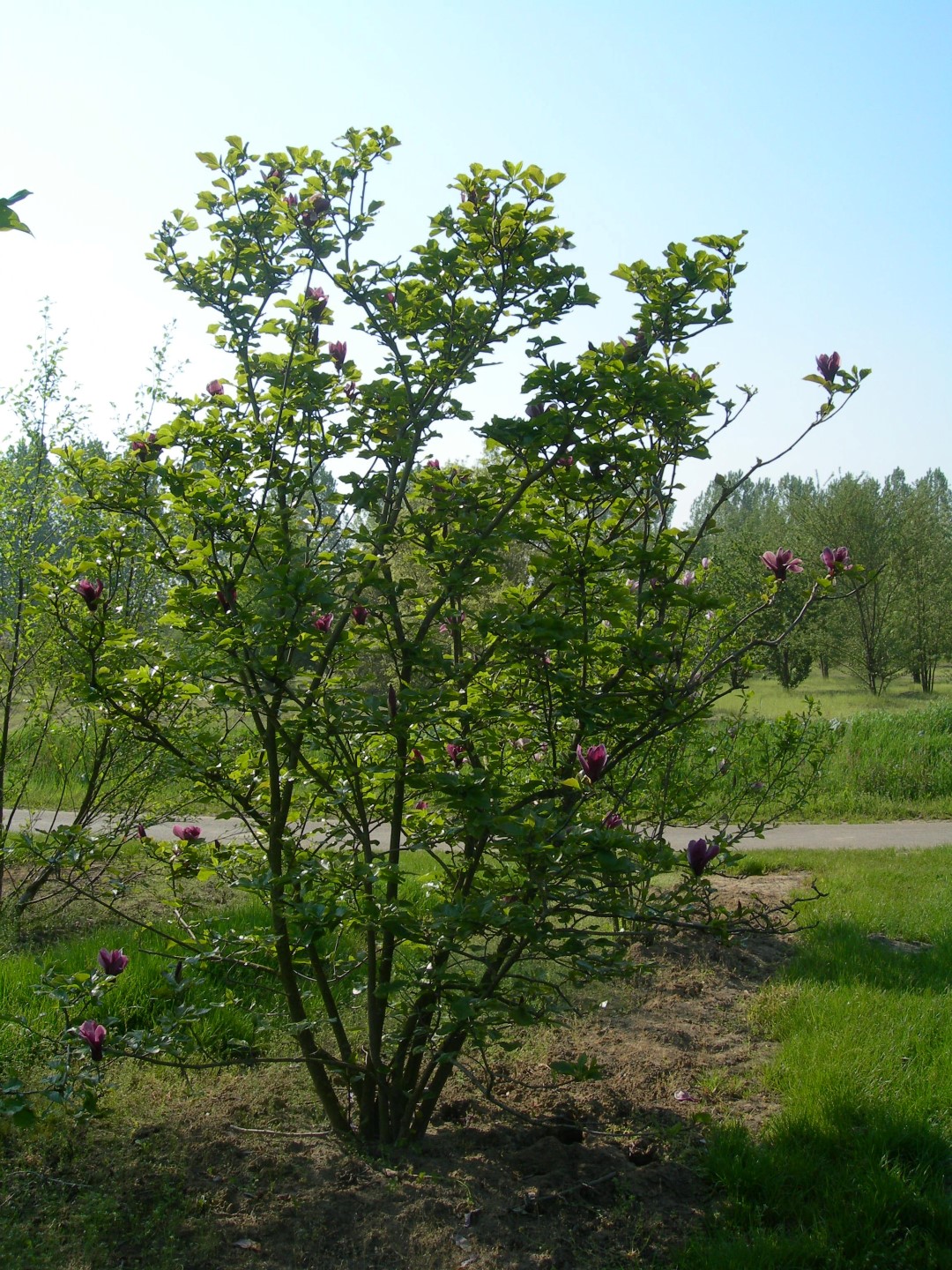 Magnolia liliiflora 'Nigra' bloeit in mei.
