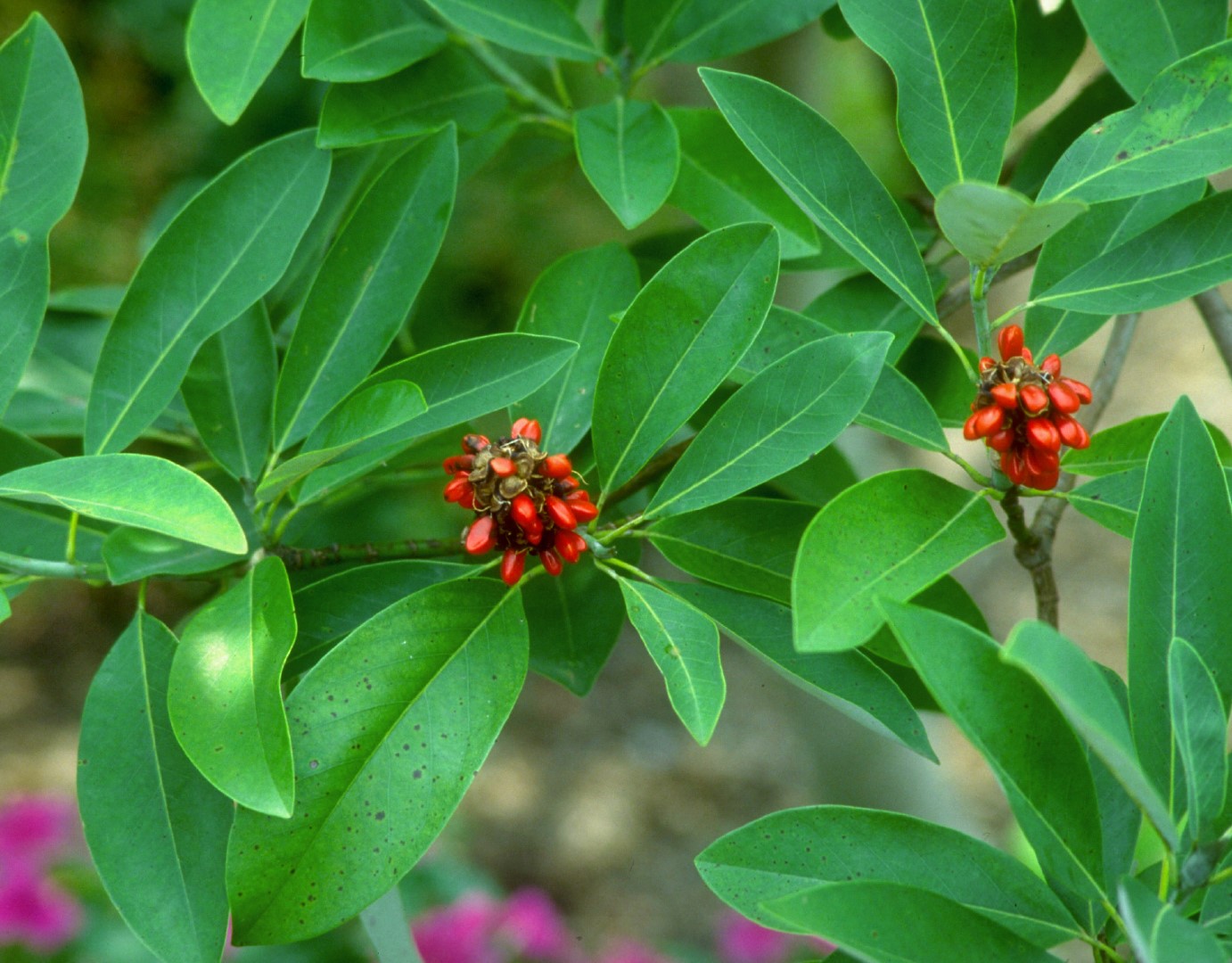 langwerpig, roze, zaden oranjerood