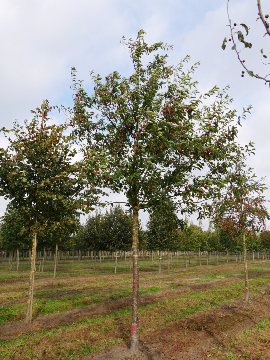Hoogstam boom Zure grond Kalkrijke grond Kleigrond Lemige grond Zandgrond verdraagt verharding Bestand tegen vorst (WH 1 t/m 6) Bestand tegen wind 3de grootte, boom tot 6 meter Halfopen kroon Groen Roze Wit Mei Gemiddelde groeisnelheid Opvallende bloei Drachtboom voor bijen Voedselboom voor vogels Niet giftig (gewoonlijk) Sierlijke vruchten