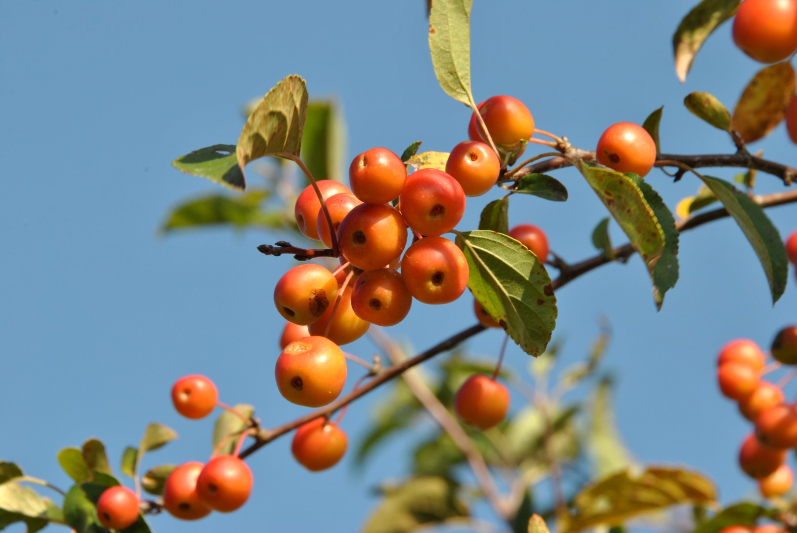 De bladeren van de Malus 'Professor Sprenger' kleuren in de herfst geel.
