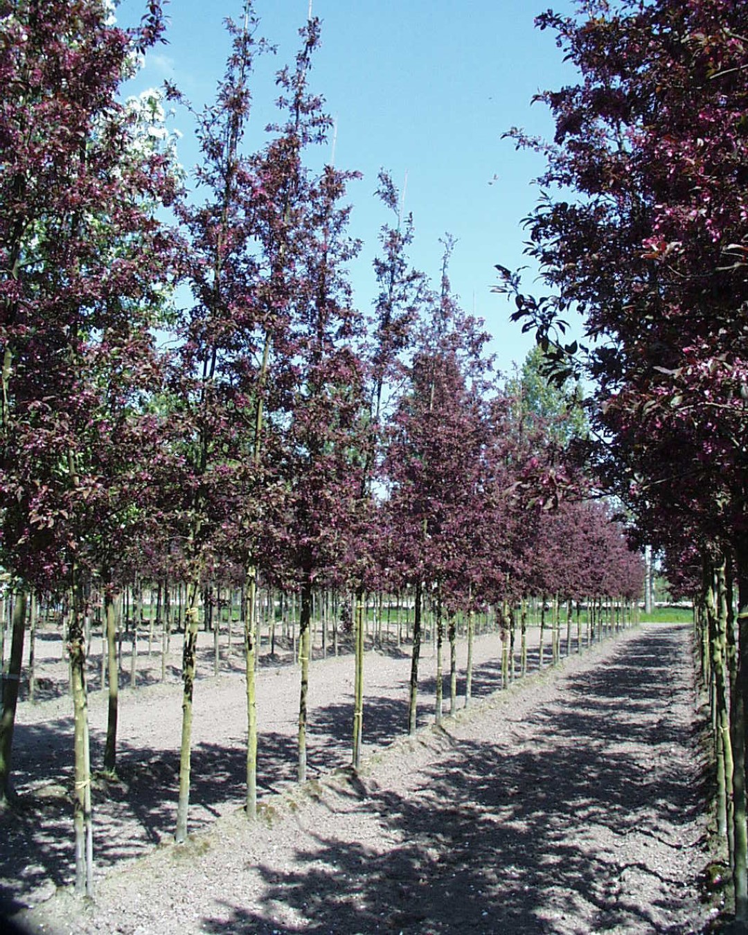 Hoogstam boom Meerstammige boom Zure grond Kalkrijke grond Kleigrond Lemige grond Zandgrond verdraagt verharding Bestand tegen vorst (WH 1 t/m 6) Bestand tegen wind Breed eirond 2de grootte, boom tussen 6 en 12m Halfopen kroon Groen Purpergroen Roodbruin Oranje/rood Paars/blauw Mei Gemiddelde groeisnelheid Opvallende bloei Alle herfstkleuren Drachtboom voor bijen Voedselboom voor vogels Niet giftig (gewoonlijk) Sierlijke vruchten
