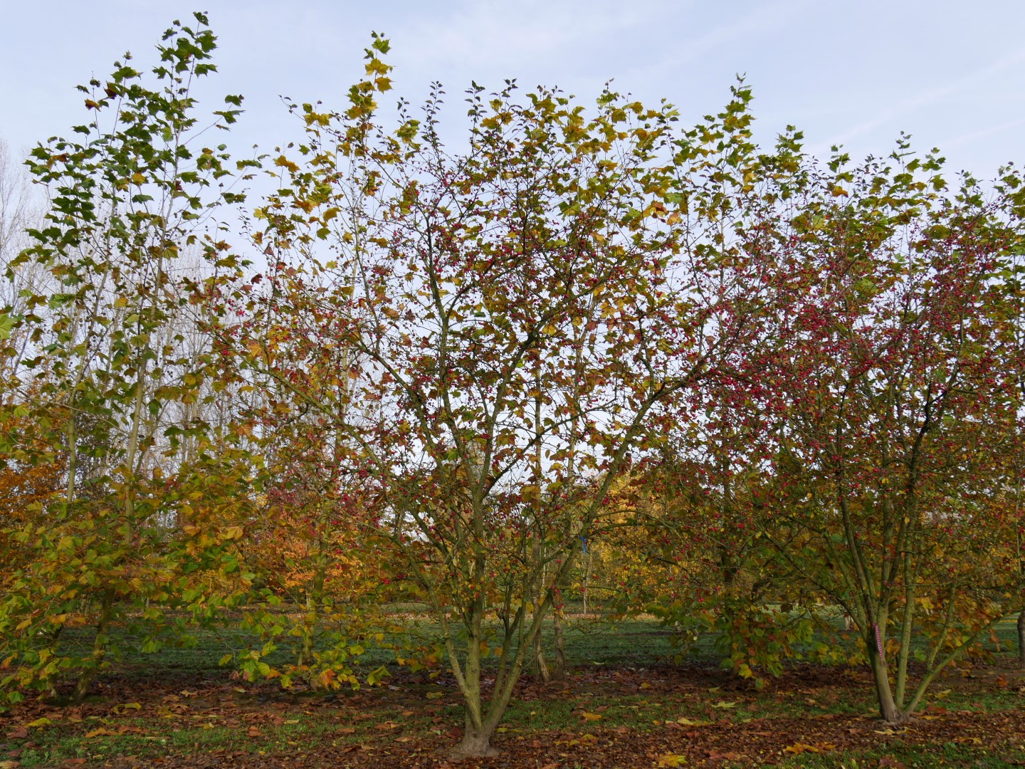 Hoogstam boom Meerstammige boom Zure grond Kalkrijke grond Kleigrond Lemige grond Zandgrond verdraagt halfverharding Bestand tegen vorst (WH 1 t/m 6) Bestand tegen wind 3de grootte, boom tot 6 meter Halfopen kroon Groen Wit Mei Gemiddelde groeisnelheid Opvallende bloei Drachtboom voor bijen Voedselboom voor vogels Niet giftig (gewoonlijk) Sierlijke vruchten