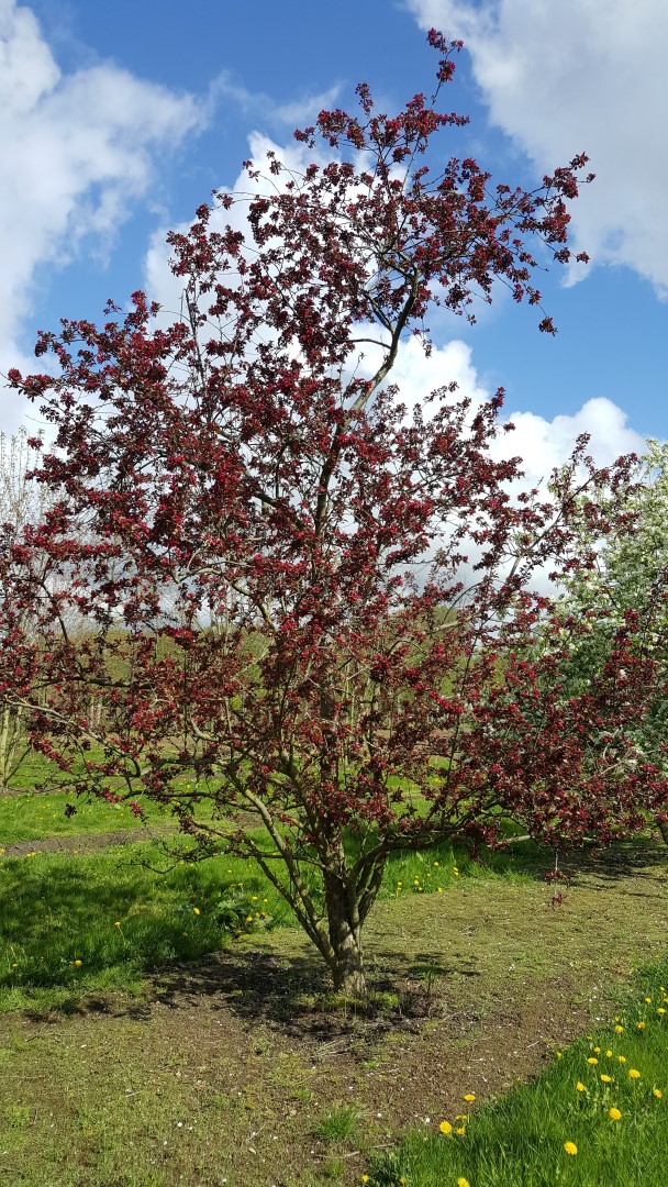 Malus 'Red Silver' bloeit in april.