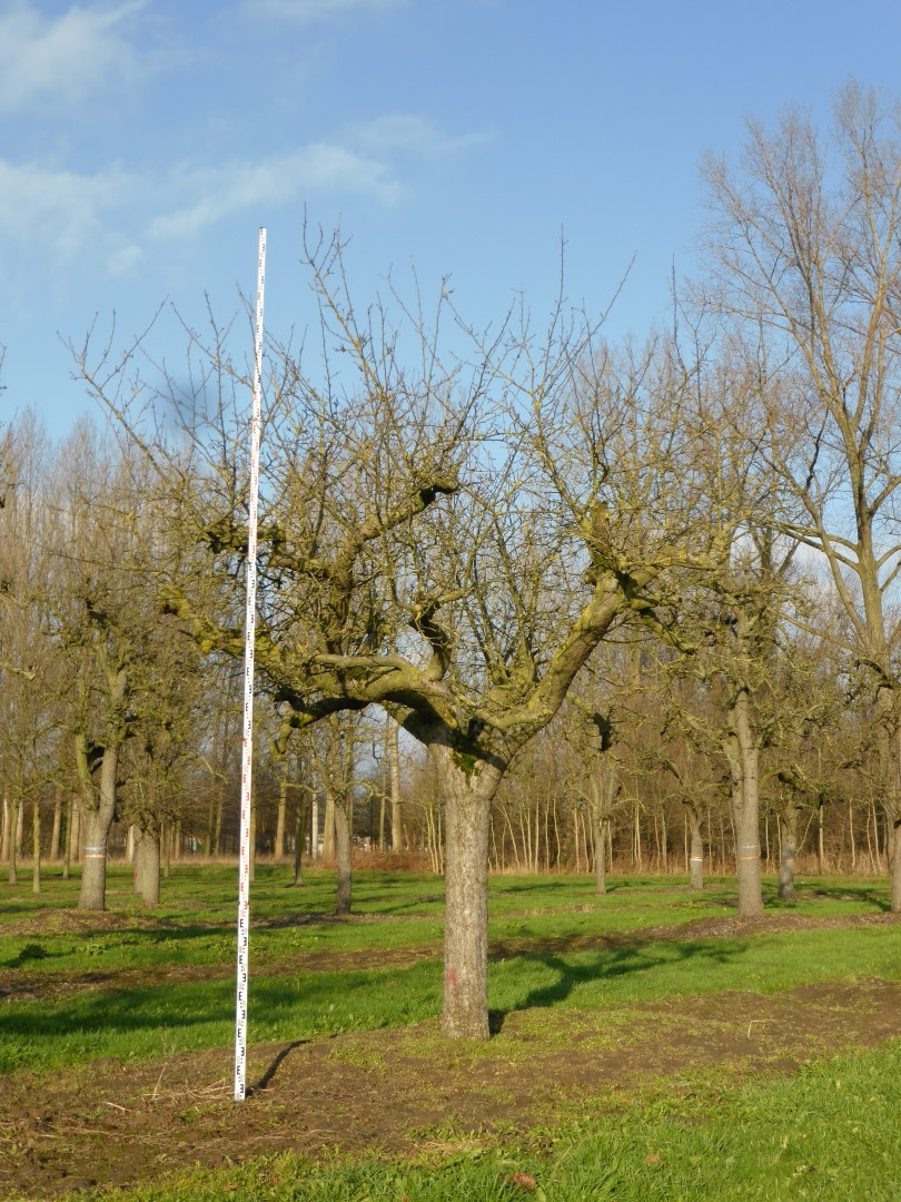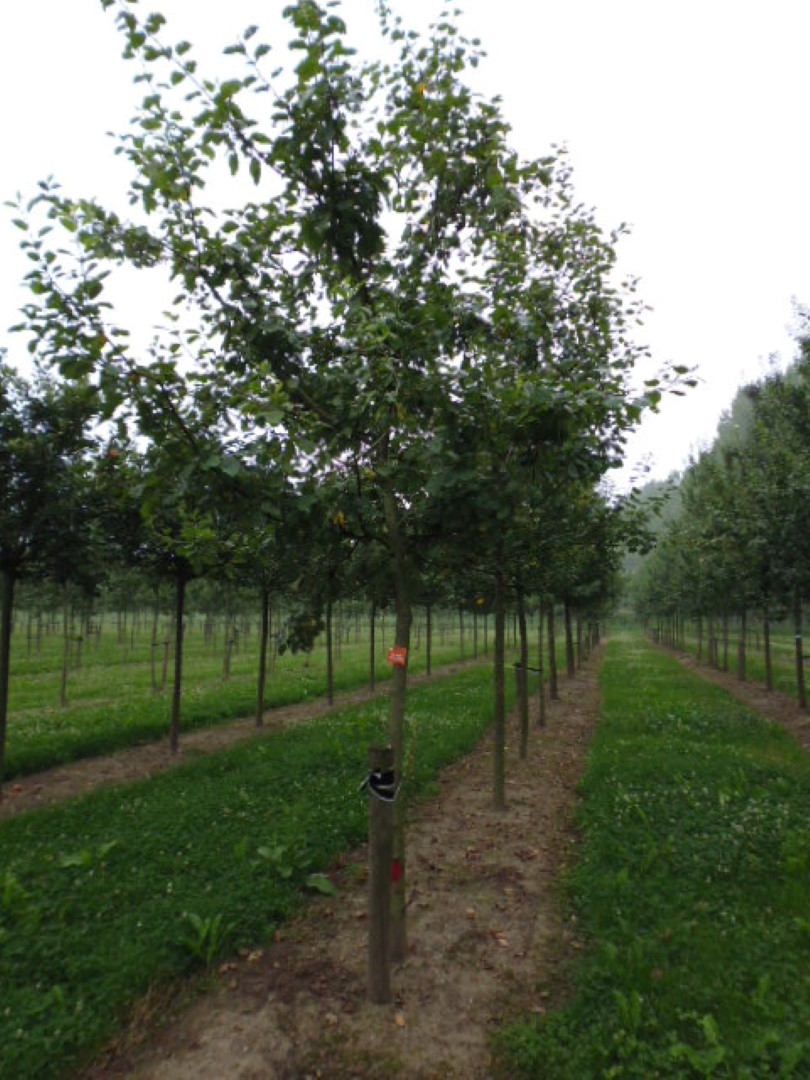 Hoogstam fruitboom Hoogstam boom Leifruit Zure grond Kleigrond Lemige grond Zandgrond verdraagt verharding Bestand tegen vorst (WH 1 t/m 6) Bestand tegen wind 2de grootte, boom tussen 6 en 12m Halfopen kroon Groen Wit April Gemiddelde groeisnelheid Opvallende bloei Drachtboom voor bijen Voedselboom voor vogels Niet giftig (gewoonlijk) Grillig groeiend Sierlijke vruchten Eetbare vruchten