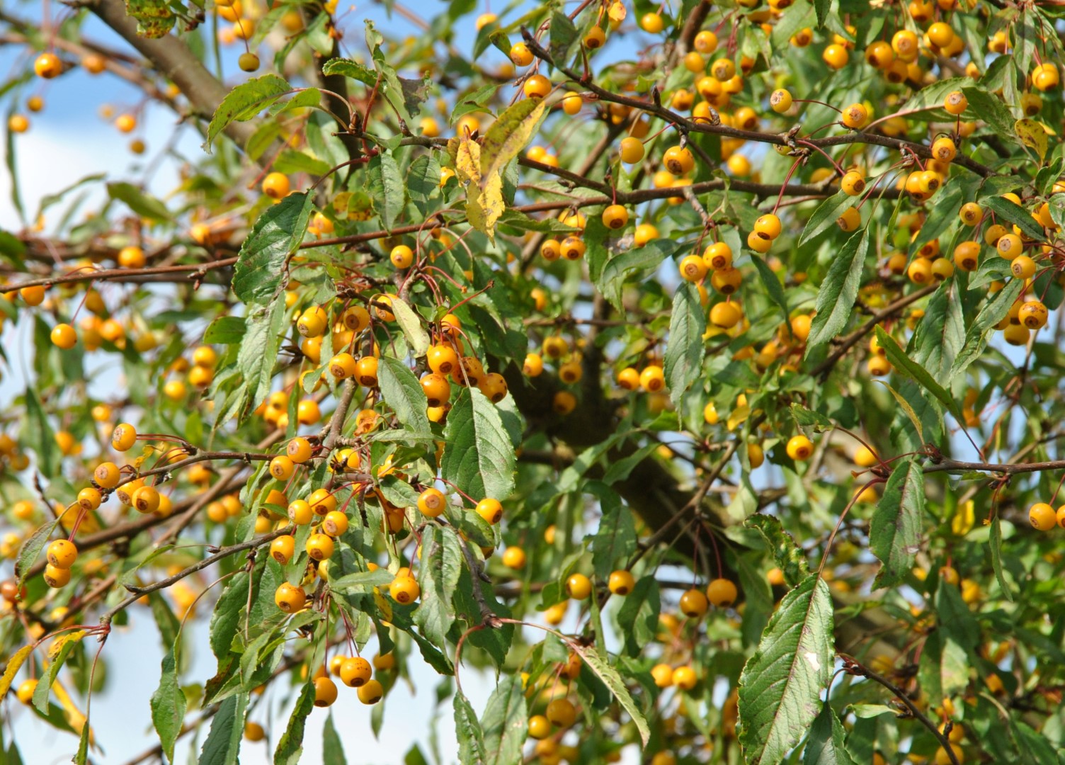 geel met oranjerode blos, Ø circa 1 cm