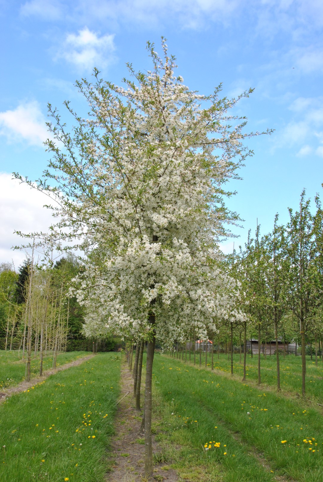 Malus toringo 'Brouwers Beauty' bloeit in april.
