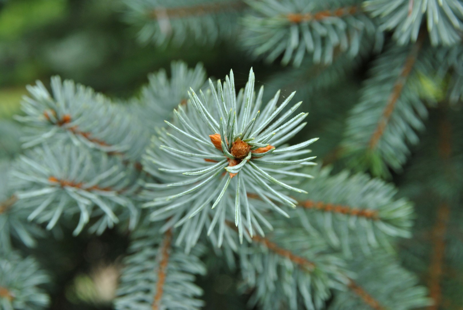 Een sterk op ‘Hoopsii’ lijkende, breed piramidale boom. Normaal tot circa 6 m hoog maar in uitzonderlijke gevallen kan de boom tot 10 m hoog worden. De vertakking is dicht, regelmatig en min of meer horizontaal. De bast is grijsbruin, kleurt later zwartgrijs en is diep geschubd. De jonge twijgen zijn oranjebruin. De stijve en stekelige naalden zijn intens licht blauwgrijs en erg opvallend. De lange cilindrische kegels zijn eerst groen en kleuren geelbruin bij rijpen. Een mooie vorm die geschikt is voor toepassing in moderne ontwerpen. ‘Snowkiss’ stelt weinig eisen aan de bodem, zolang deze voldoende voedzaam en vochtig is, en verlangt een zonnige standplaats. Verdraagt iets meer droogte dan andere soorten en is bestand tegen stadsklimaat en luchtvervuiling.