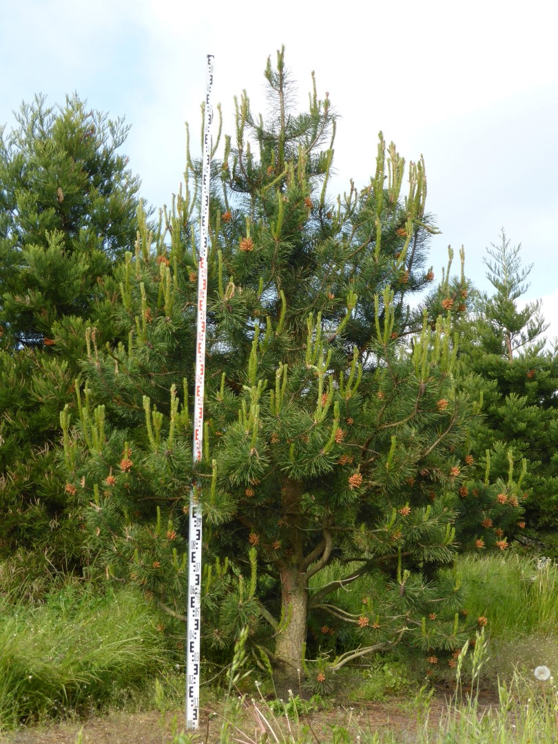 Pinus contorta bloeit in mei.