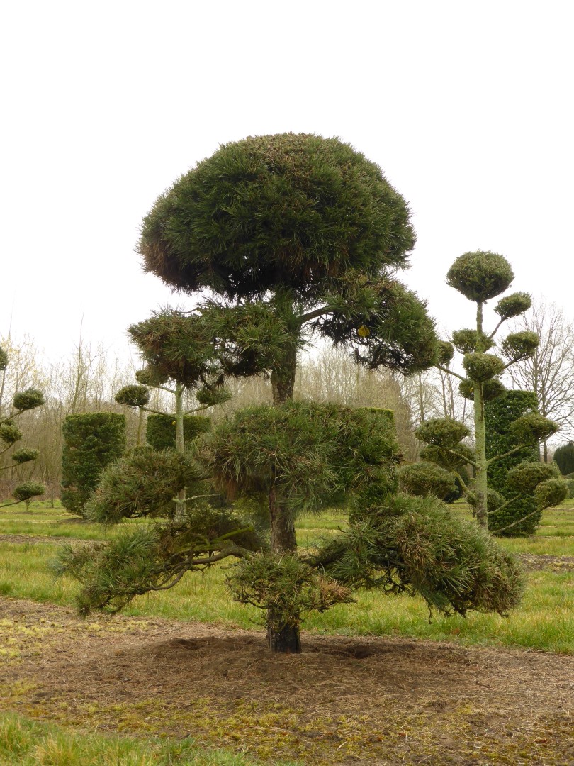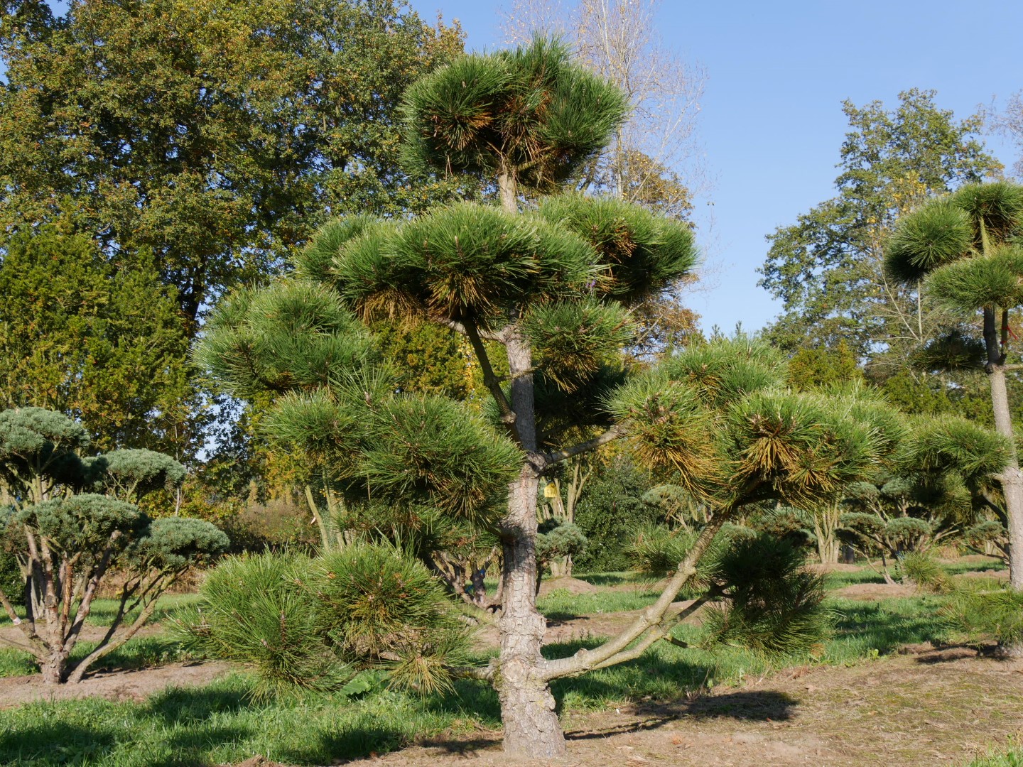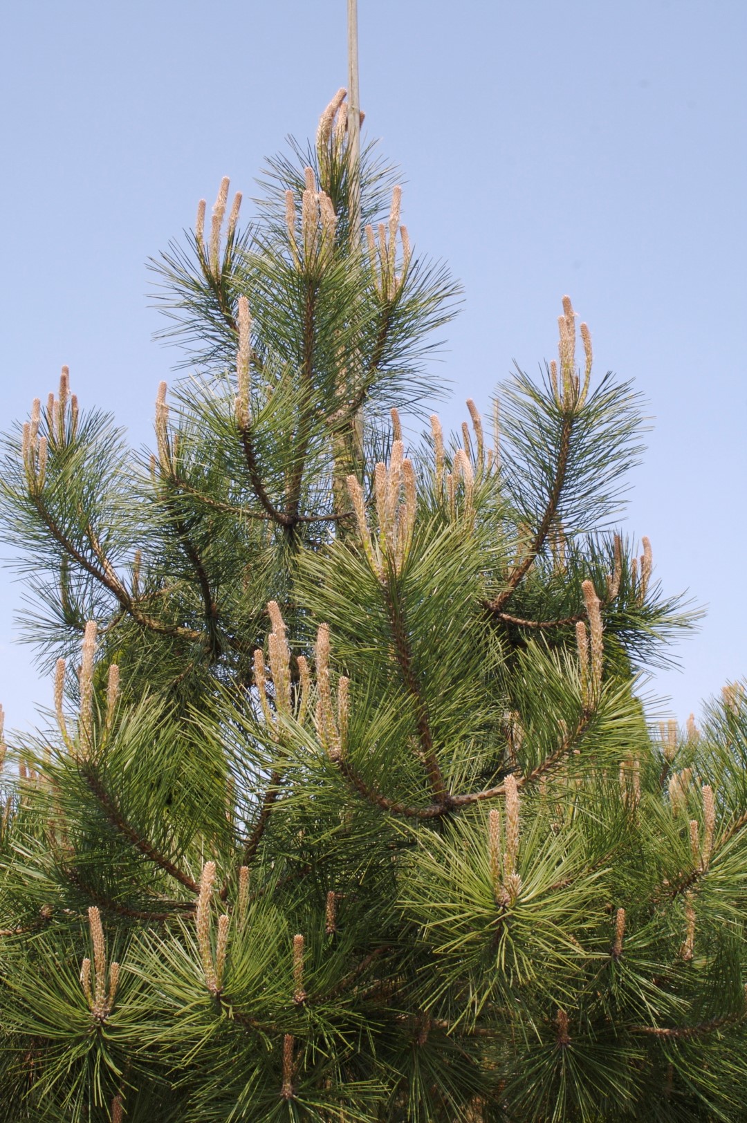 Vormt een zeer grote imposante boom met een opvallende schors. Toe te passen als laag vertakte of als opgekroonde boom. Indien vrijstaand blijven de takken tot aan de basis gevuld. In zijn jeugd nog piramidaal groeiend maar op ouderdom breder schermvormig tot rond wordend. De zwartgrijze schors is diep gegroefd en vooral bij oude bomen bijzonder decoratief. Takken zijn kaal en geelbruin. De naalden staan in bundels van 2 bijeen en zijn opvallend donkergroen, stijf en iets stekend. De bijna symmetrische kegels zijn lichtbruin en hangen gewoonlijk in paren of alleen. Lege kegels vallen in het voorjaar af. Geschikt voor vele grondsoorten Groeit nog op droge kalkrijke grond. Verdraagt vormsnoei goed waardoor de boom ook voor kleinere plaatsen is te gebruiken. Is bestand tegen zeewind en zeer resistent tegen luchtvervuiling.