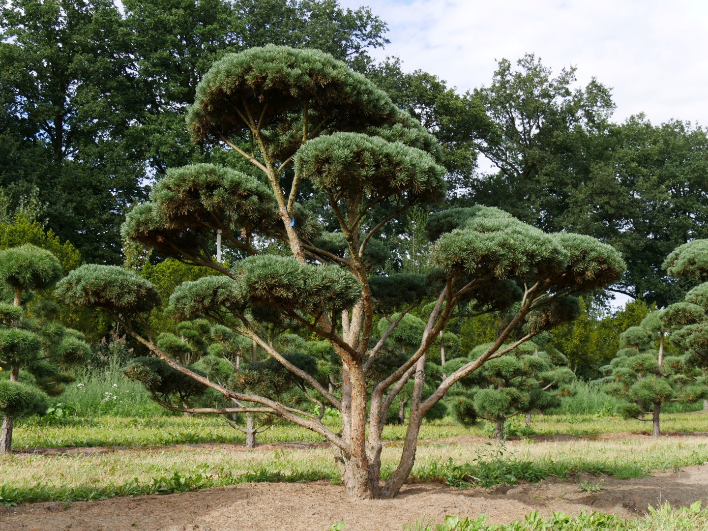 Meerstammige boom Solitaire conifeer Zure grond Kleigrond Lemige grond Voedselarme grond Veengrond Zandgrond verdraagt geen verharding Lichtminnend Bestand tegen vorst (WH 1 t/m 6) Kan op droge grond Bestand tegen wind Afgeplat bolvormig Rond/bolvormig 3de grootte, boom tot 6 meter Dichte kroon Blauwgroen Geel Gemiddelde groeisnelheid Alle soorten Voedselboom voor vogels Niet giftig (gewoonlijk) Grillig groeiend Sierlijke vruchten Geurende bloemen Toekomstboom