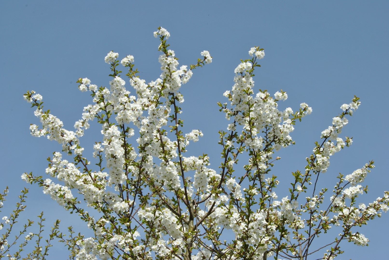 Prunus ×gondouinii 'Schnee' bloeit in april.