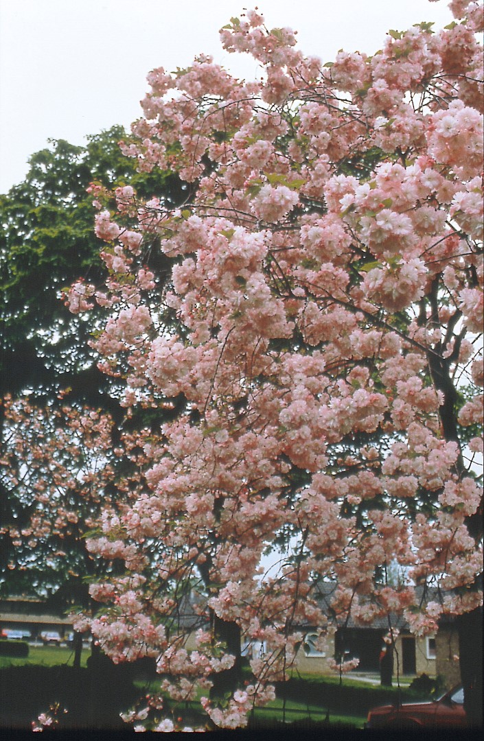 Prunus serrulata 'Pink Perfection' bloeit in april.