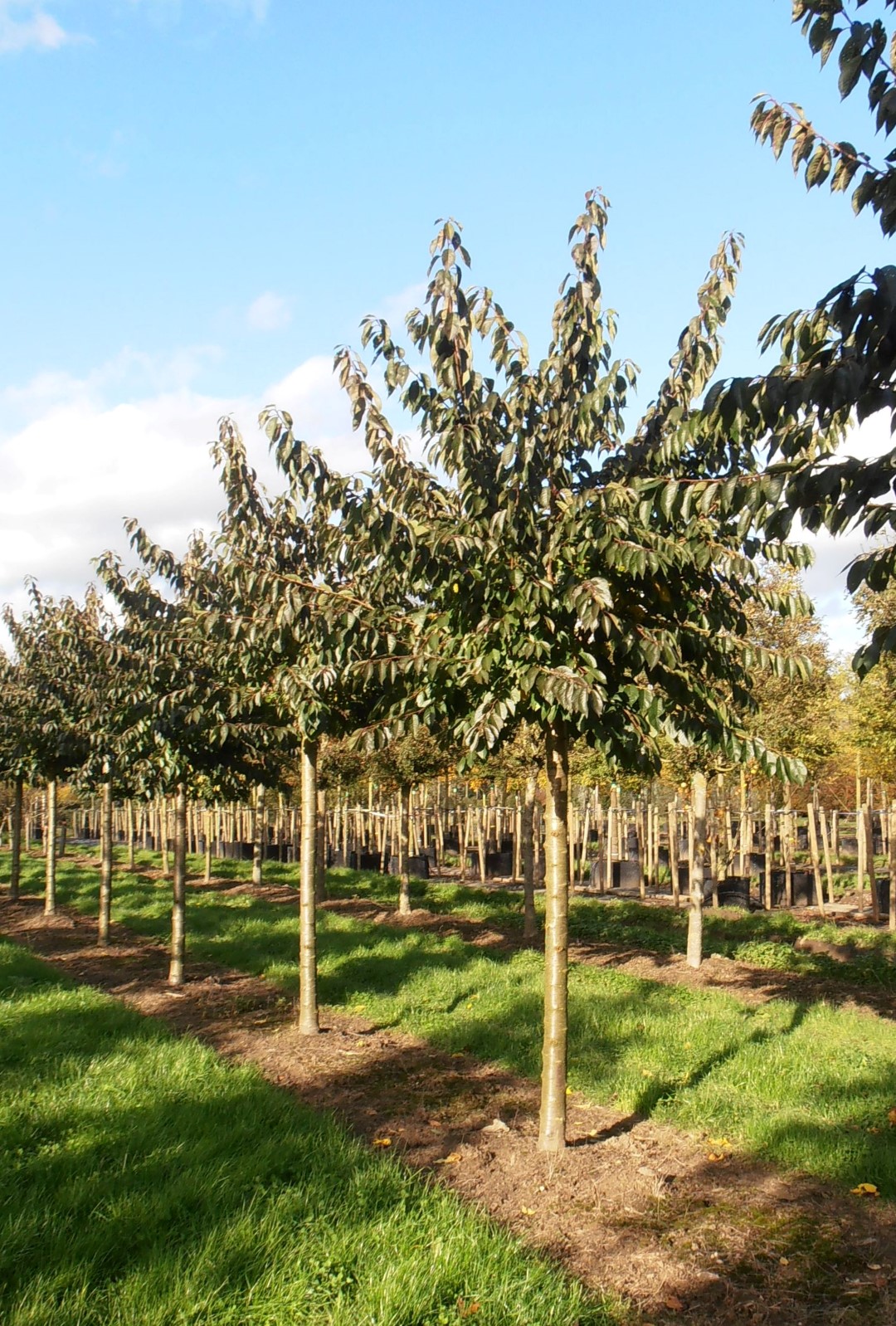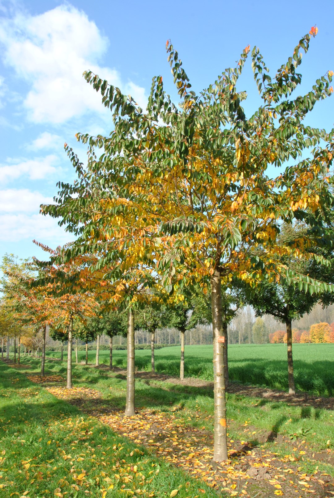 De bladeren van de Prunus ×yedoensis kleuren in de herfst geel.