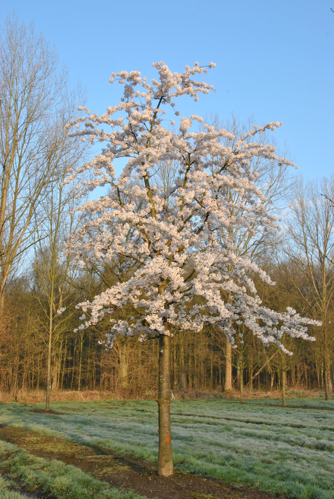Hoogstam boom Meerstammige boom Kalkrijke grond Kleigrond Lemige grond Zandgrond verdraagt geen verharding Bestand tegen vorst (WH 1 t/m 6) Breed vaasvormig Breed treurend 2de grootte, boom tussen 6 en 12m Halfopen kroon Groen Roze Wit April Gemiddelde groeisnelheid Opvallende bloei Alle herfstkleuren Drachtboom voor bijen Voedselboom voor vogels Niet giftig (gewoonlijk) Grillig groeiend Sierlijke vruchten Geurende bloemen Speelboom