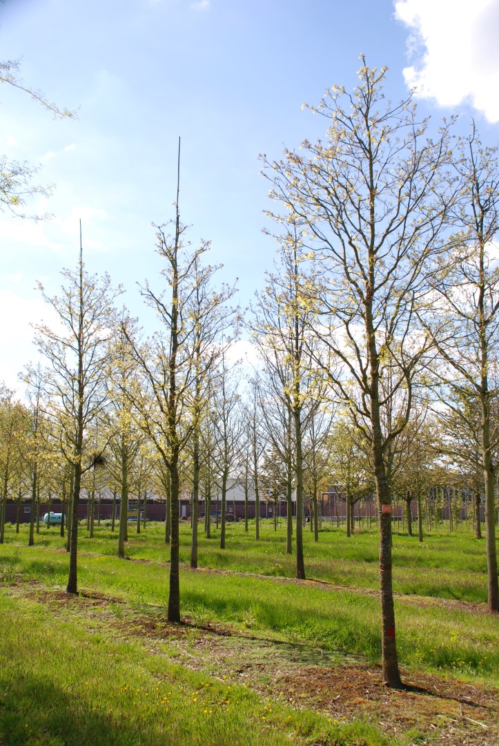 Een Quercus palustris 'Fastigiata' heeft een snelle groeisnelheid en zal uiteindelijk een hoogte bereiken van 10-12 m, snelgroeiend.