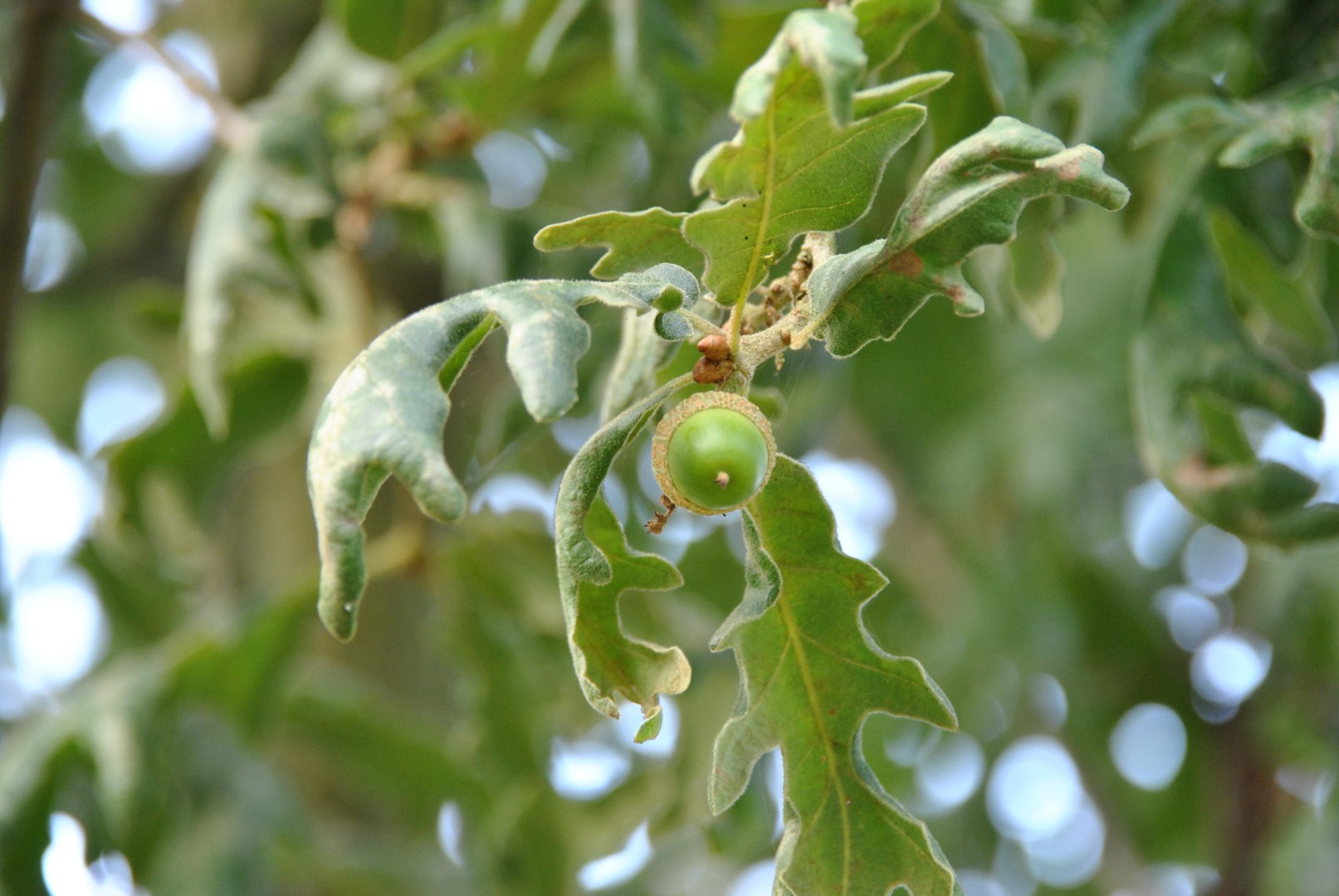 lang eivormige eikels, 2 tot 5 gebundeld, Ø 1,5 - 2,5 cm