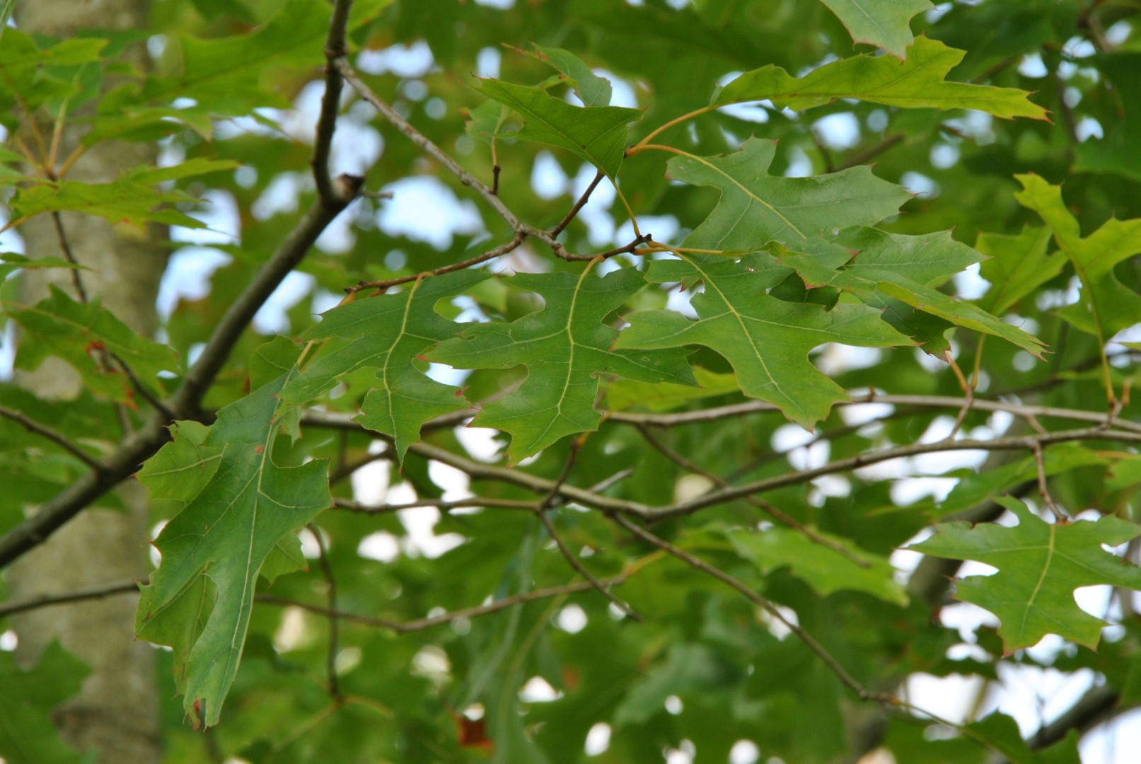 De bladeren van de Quercus shumardii kleuren in de herfst geel, oranje, rood.