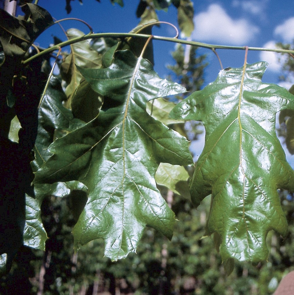 De bladeren van de Quercus velutina 'Magnifica' kleuren in de herfst geel.