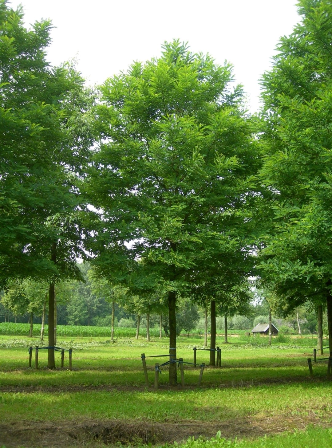 Hoogstam boom Meerstammige boom Kalkrijke grond Kleigrond Lemige grond Voedselarme grond Zandgrond verdraagt verharding Lichtminnend Bestand tegen strooizout Bestand tegen vorst (WH 1 t/m 6) Kan op droge grond Ovaal 1ste grootte, boom hoger dan 12m Halfopen kroon Groen Wit Gemiddelde groeisnelheid Geveerd blad Giftige onderdelen Toekomstboom