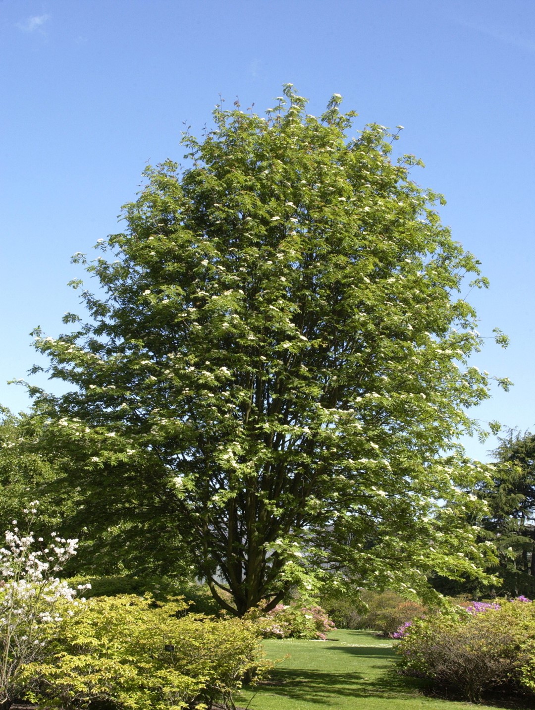 Hoogstam boom Meerstammige boom Kleigrond Lemige grond Zandgrond verdraagt halfverharding Bestand tegen vorst (WH 1 t/m 6) Kan op droge grond Bestand tegen wind Ovaal 2de grootte, boom tussen 6 en 12m Halfopen kroon Groen Wit Mei Vroege uitloop Gemiddelde groeisnelheid Opvallende bloei Geveerd blad Alle herfstkleuren Drachtboom voor bijen Voedselboom voor vogels Niet giftig (gewoonlijk) Sierlijke vruchten