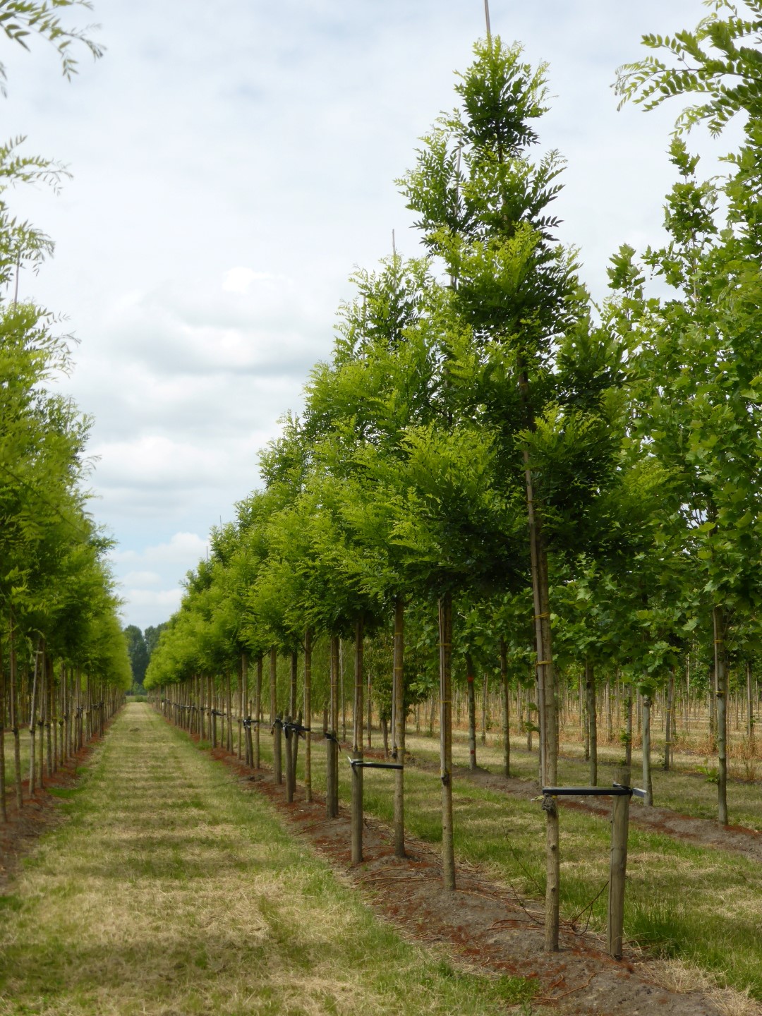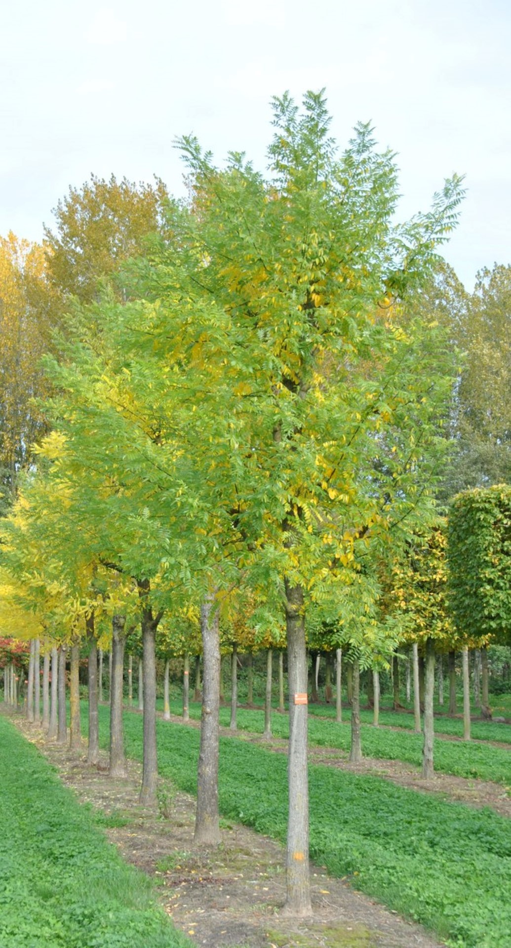 Hoogstam boom Meerstammige boom Kalkrijke grond Kleigrond Lemige grond Zandgrond verdraagt verharding Lichtminnend Bestand tegen strooizout Bestand tegen vorst (WH 1 t/m 6) Kan op droge grond Smal vaasvormig 1ste grootte, boom hoger dan 12m Halfopen kroon Groen Wit Juli Late uitloop Snelle groeisnelheid Opvallende bloei Geveerd blad Drachtboom voor bijen Waardboom voor vlinders Giftige onderdelen Grillig groeiend Speelboom Toekomstboom